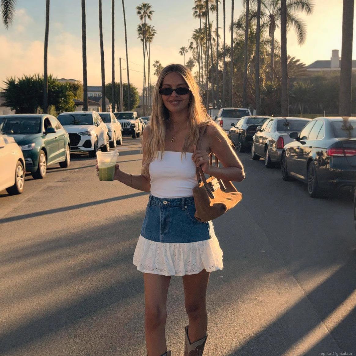 • Women's Sexy High Waist Denim Lace Patchwork Mini Skirt Ruffle Hem Bodycon Hot Girl Style Eyelet Embroidery Denim Skirt Summer Outfit