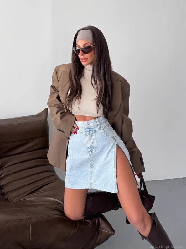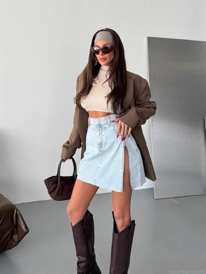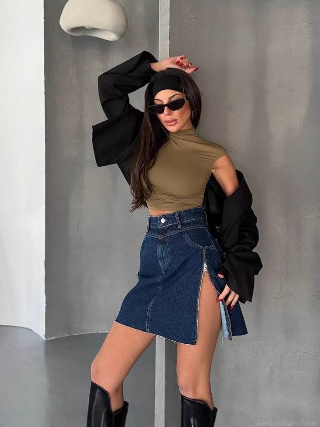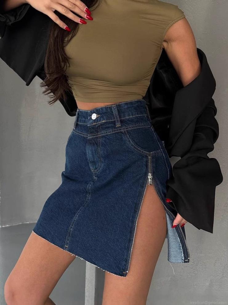 • Women's Sexy High Waist Irregular Denim Mini Skirt Side Zipper Slit Frayed Hem Washed Cotton Denim Short Skirt for Summer Streetwear INS Style