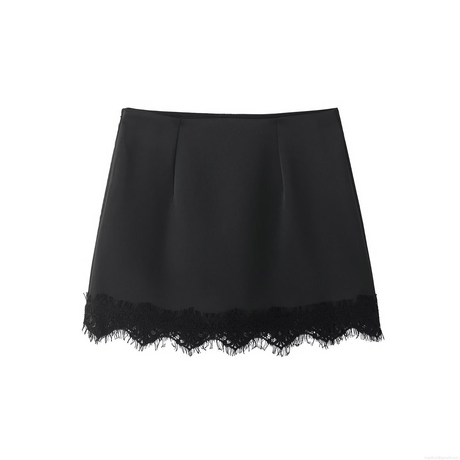 • Women's Sexy High Waist Mini Skirt With Eyelash Lace Trim Elegant Solid Color Polyester Stitching Short Skirt For Daily Wear Streetwear Party