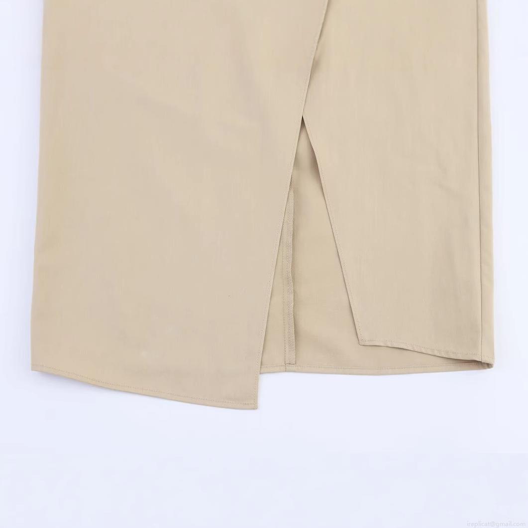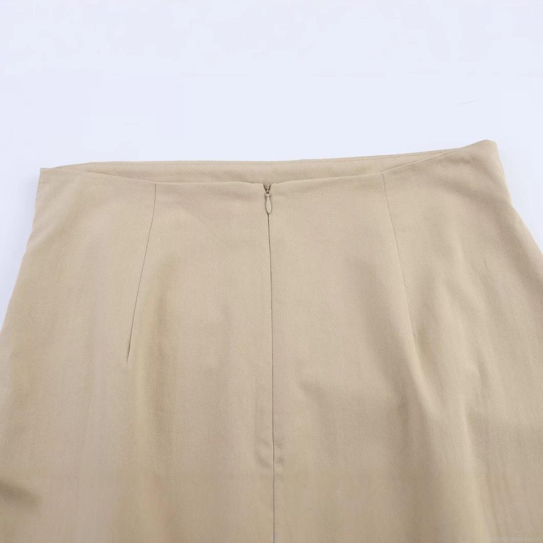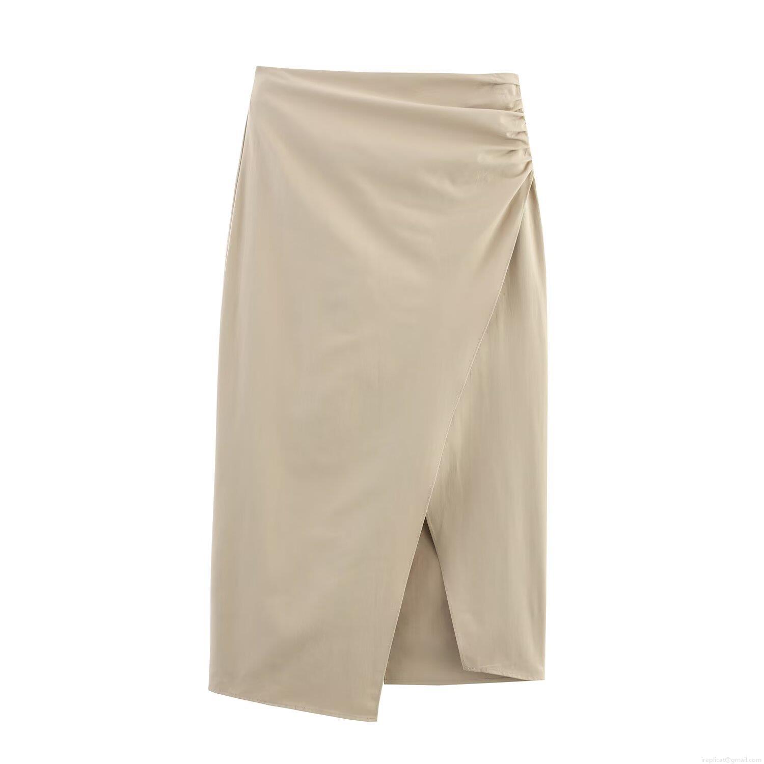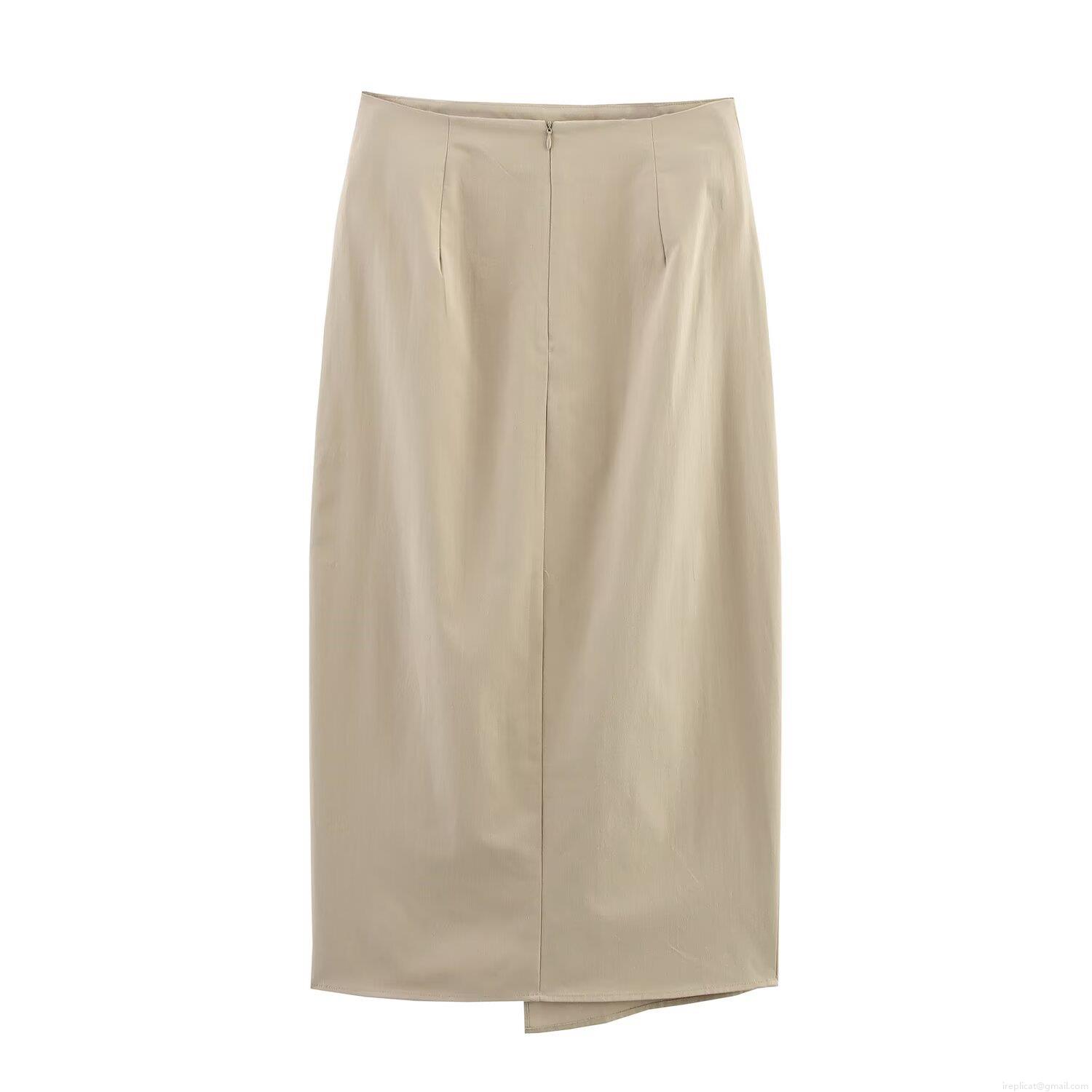 • Women's Sexy High Waist Ruched Side Midi Skirt Khaki Irregular Wrap Design Split Hem Twill Woven Polyester Bodycon Skirt For Streetwear Party Club