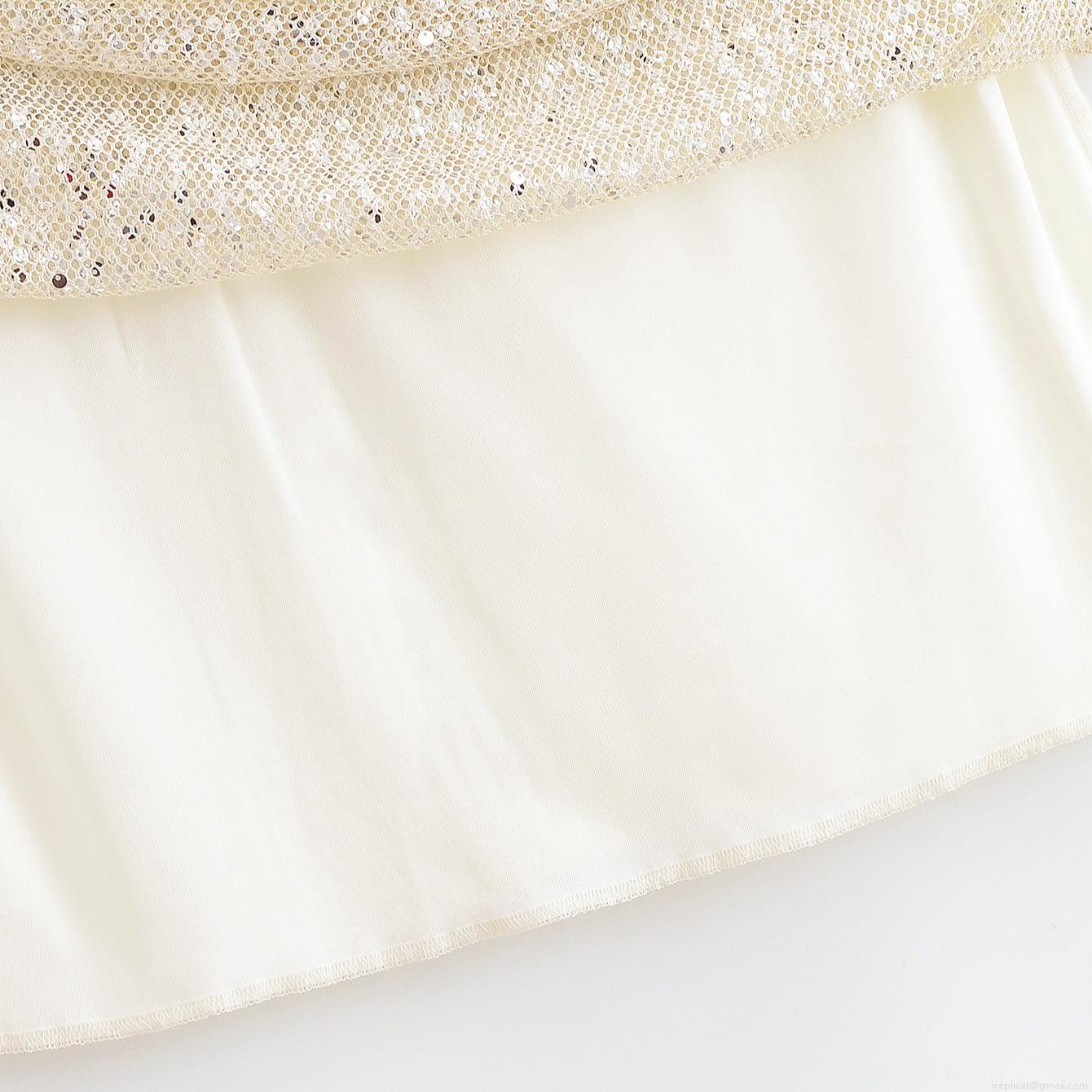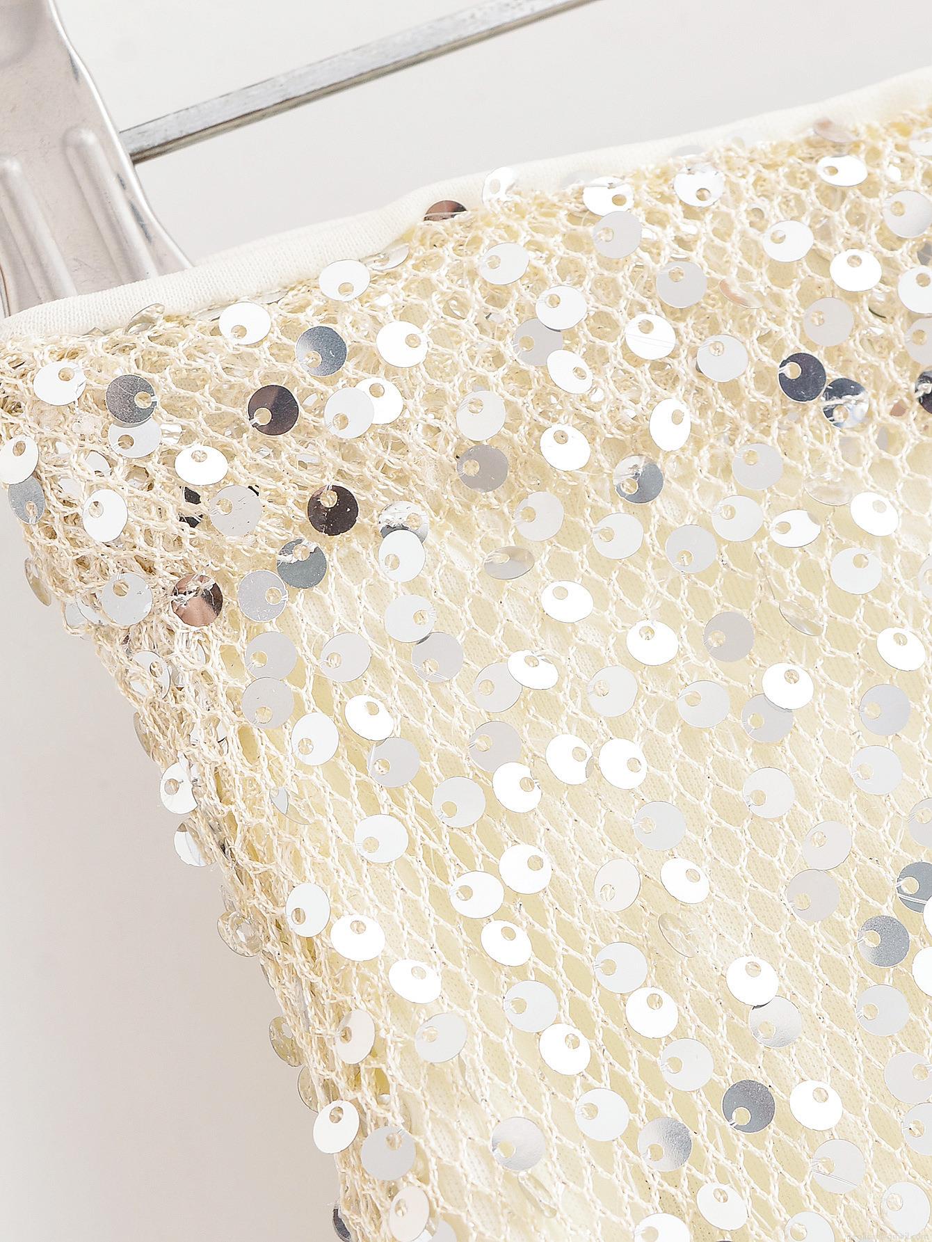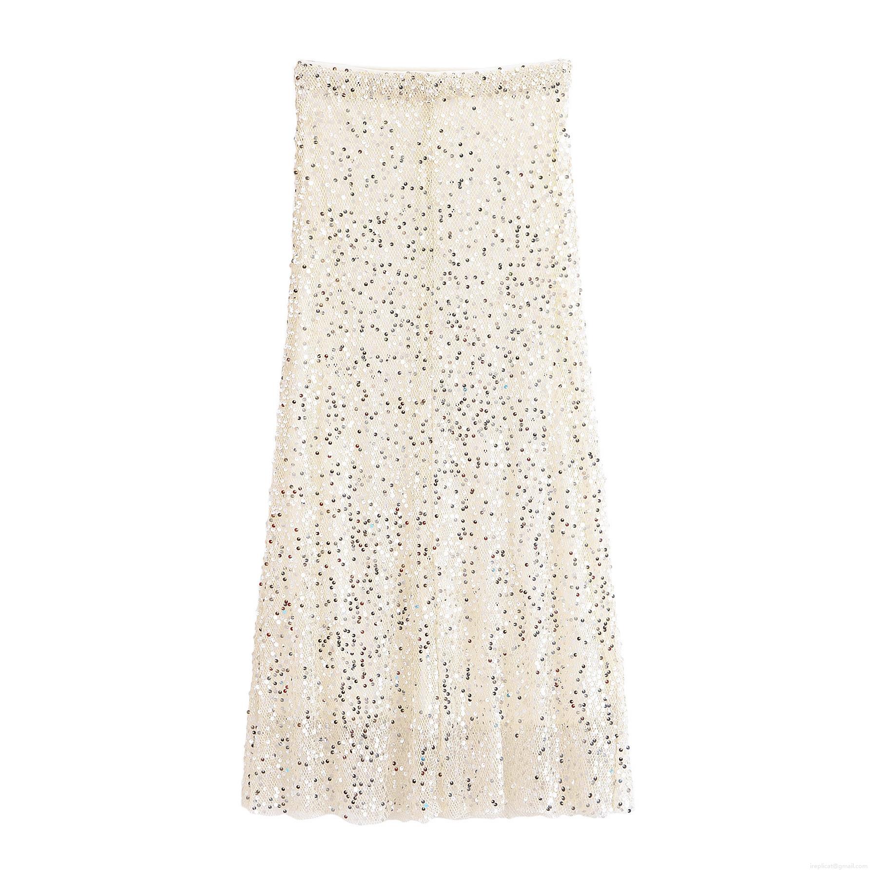 • Women's Sexy High Waist Sequin Midi Skirt Elegant Off White Polyester Mesh Glitter Straight Long Skirt For Party Club Night Out