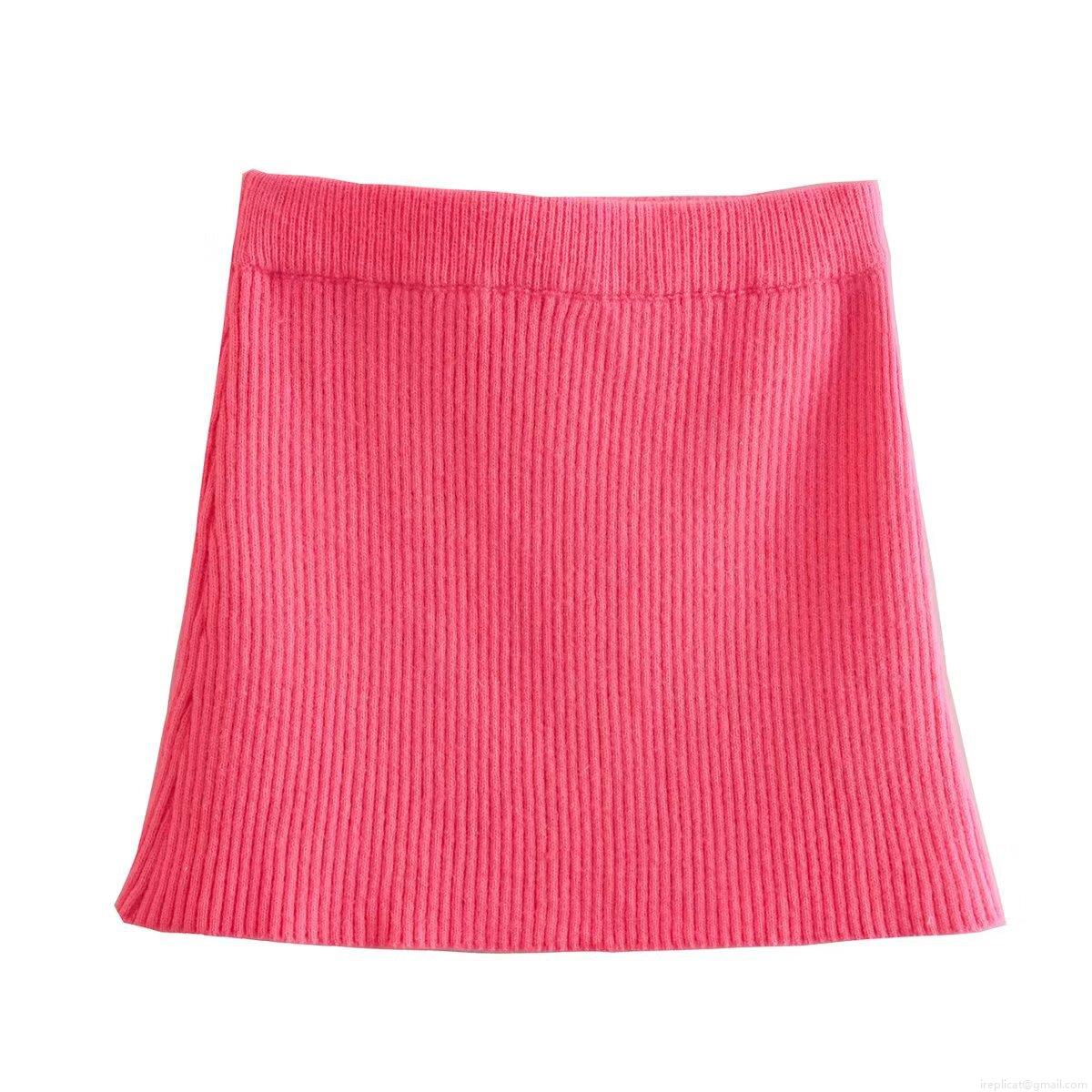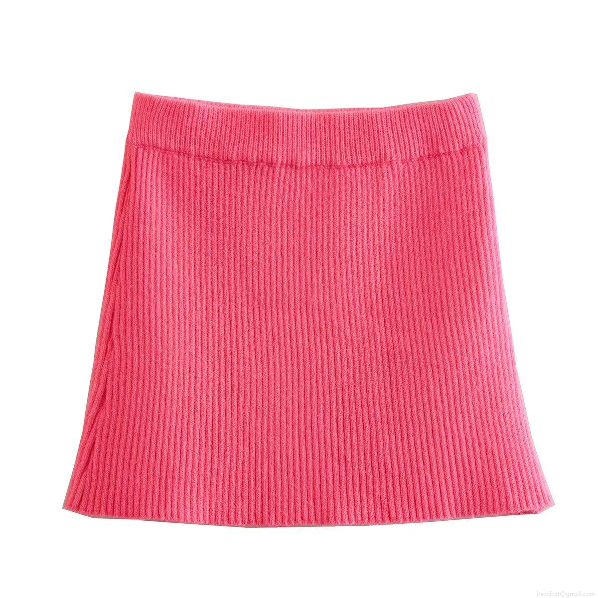 Women's Sexy Knitted Ribbed Mini Skirt Elastic High Waist Bodycon Short Skirt Streetwear Casual Autumn Rose Pink Slim Fit Bottoms