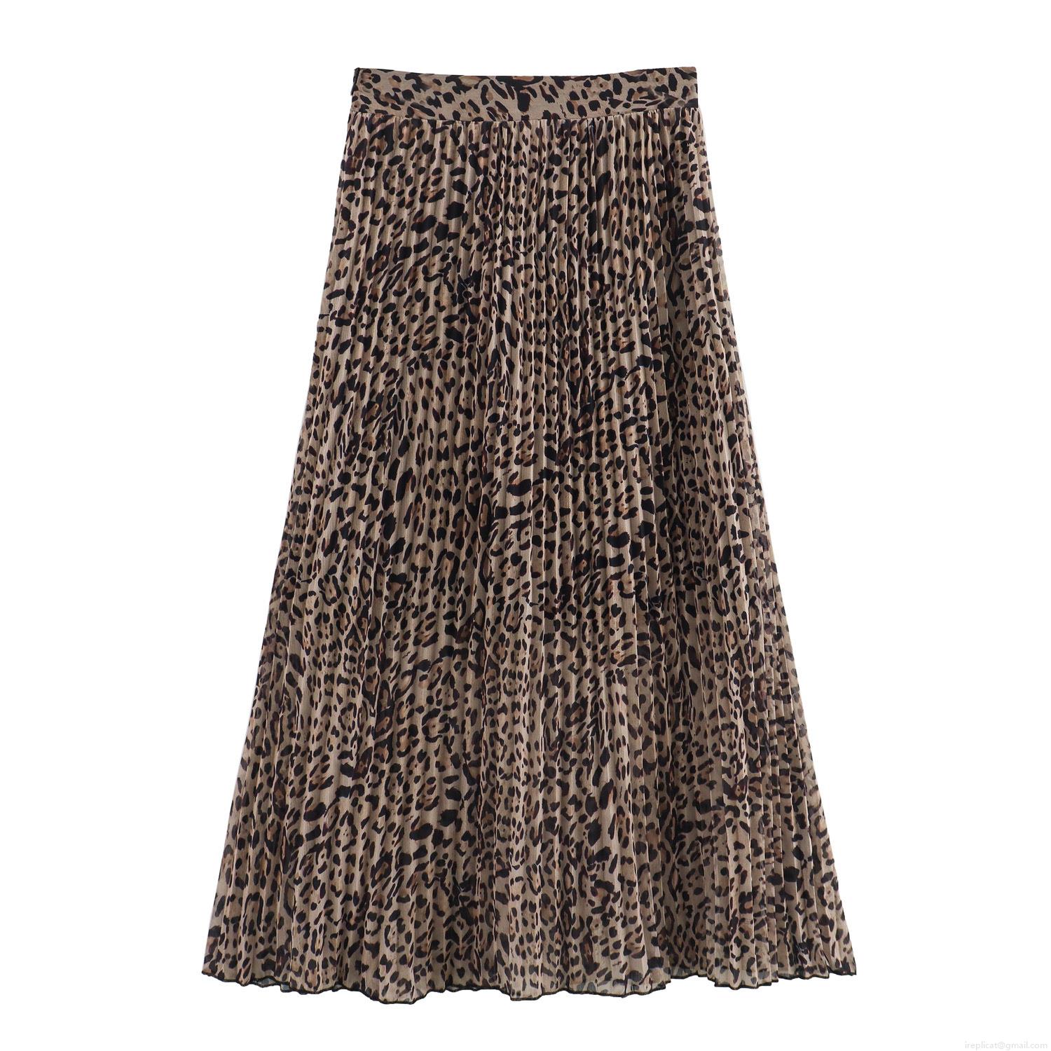 • Women's Sexy Leopard Print Pleated Skirt Chiffon High Waist A-Line Midi Skirt Streetwear Casual Party Bottoms For Women