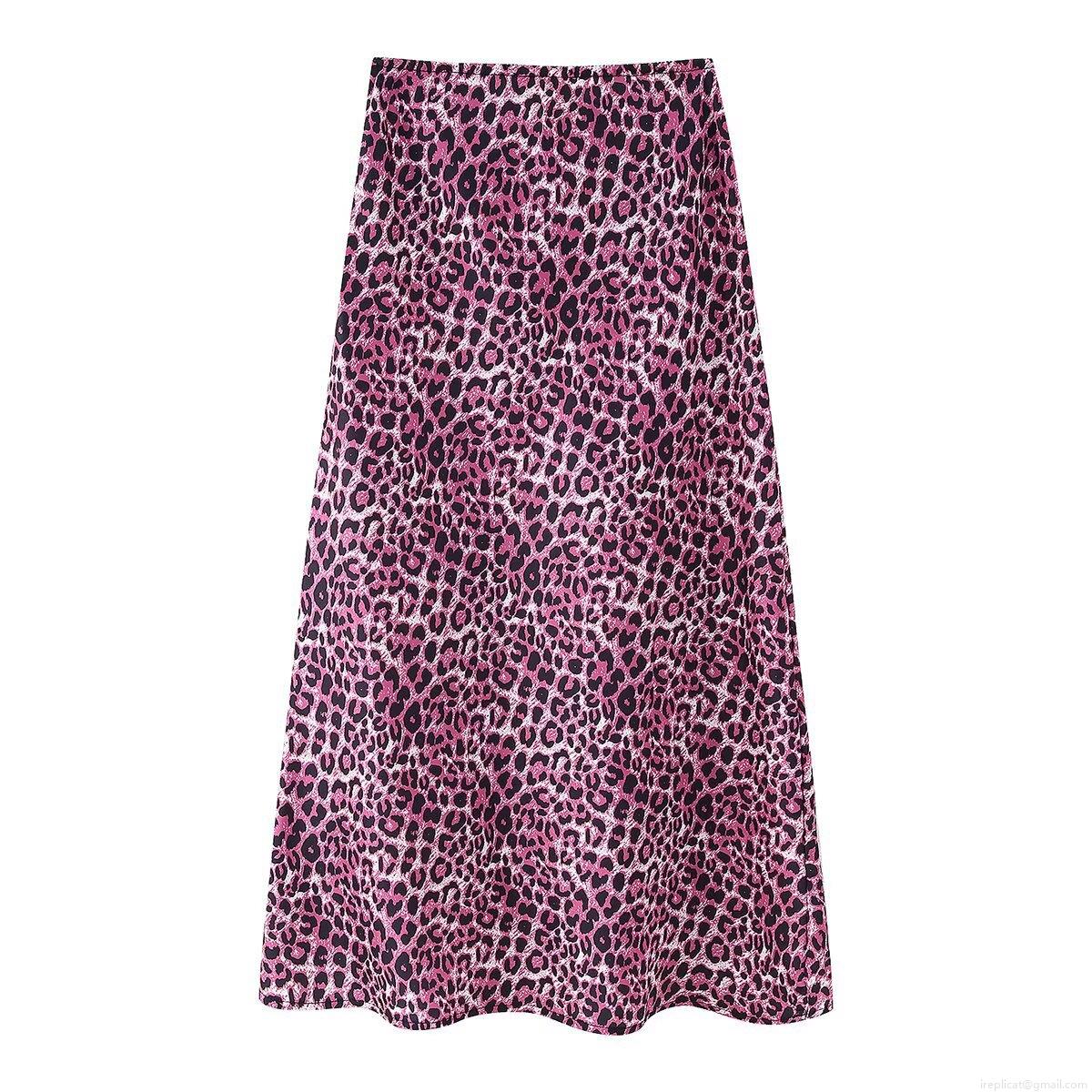 • Women's Sexy Leopard Print Satin Midi Skirt High Waist Pink Black Animal Print A-Line Skirt For Streetwear Party Daily Wear