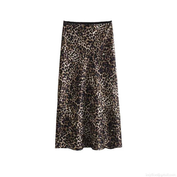 Women's Sexy Leopard Print Satin Skirt High Waist A-Line Midi Long Skirt Fashion Streetwear Party Polyester Satin Bottoms for Women