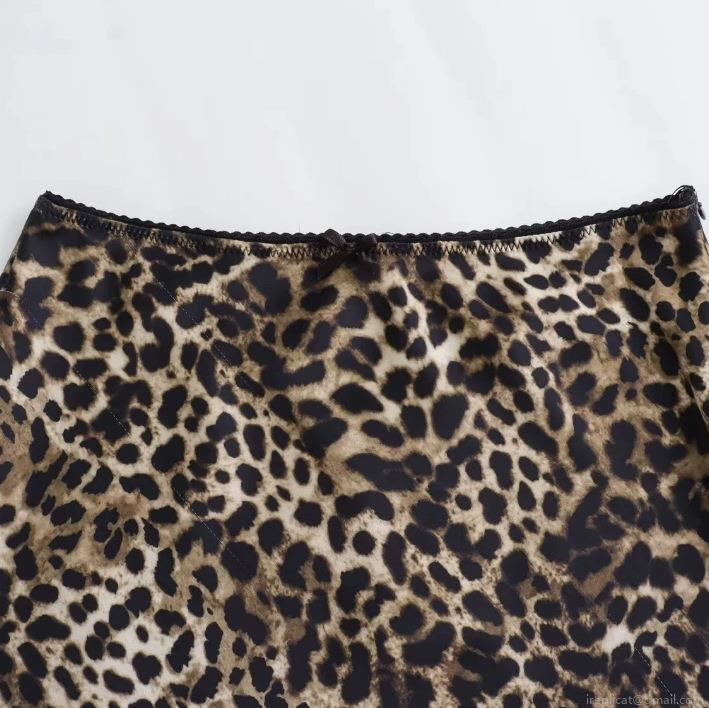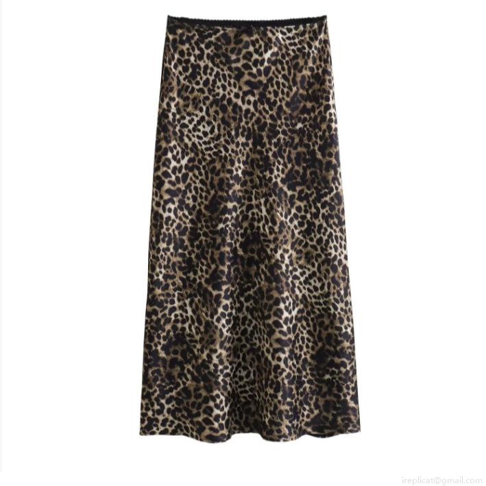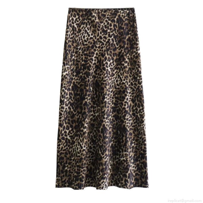 • Women's Sexy Leopard Print Satin Skirt High Waist A-Line Midi Long Skirt Fashion Streetwear Party Polyester Satin Bottoms for Women