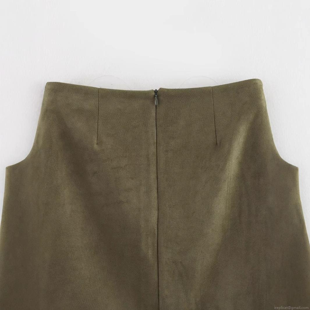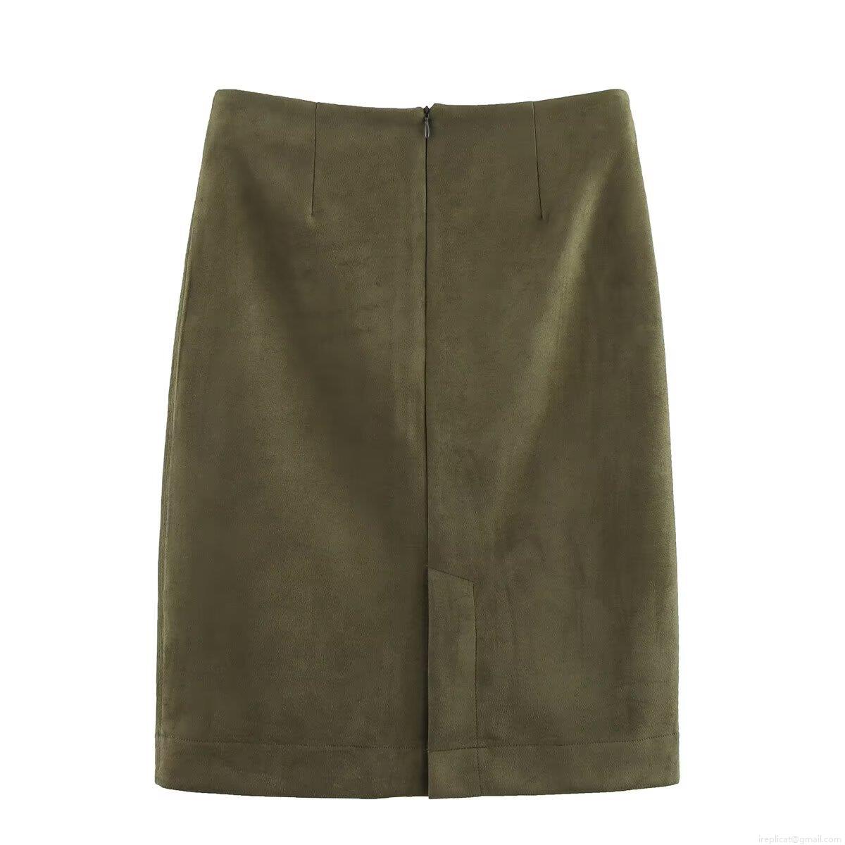 Women's Sexy Military Green Faux Suede Midi Skirt Solid Color Bodycon Pencil Skirt With Back Split Fashion Streetwear Bottoms