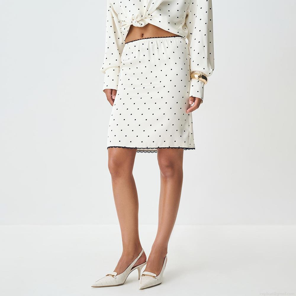 • Women's Sexy Polka Dot Mini Skirt Polyester Spandex High Waist Lace Trim Chic Bodycon Skirt Streetwear Fashion Short Skirt for Party Club