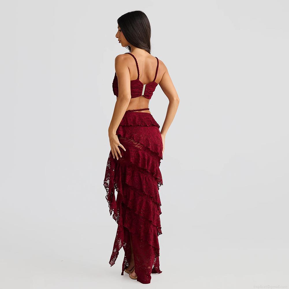 • Women's Sexy Polyester Lace Maxi Skirt High Waist Irregular Layered Ruffle Hem Tiered Cake Skirt For Summer Beach Vacation Party Clubwear