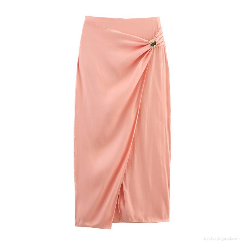 • Women's Sexy Polyester Satin Wrap Midi Skirt Elegant High Waist Solid Color Bodycon Long Skirt With Gold Alloy Buckle For Party Streetwear