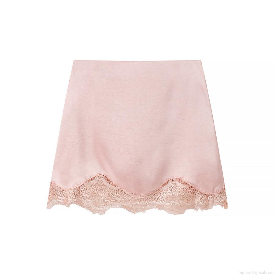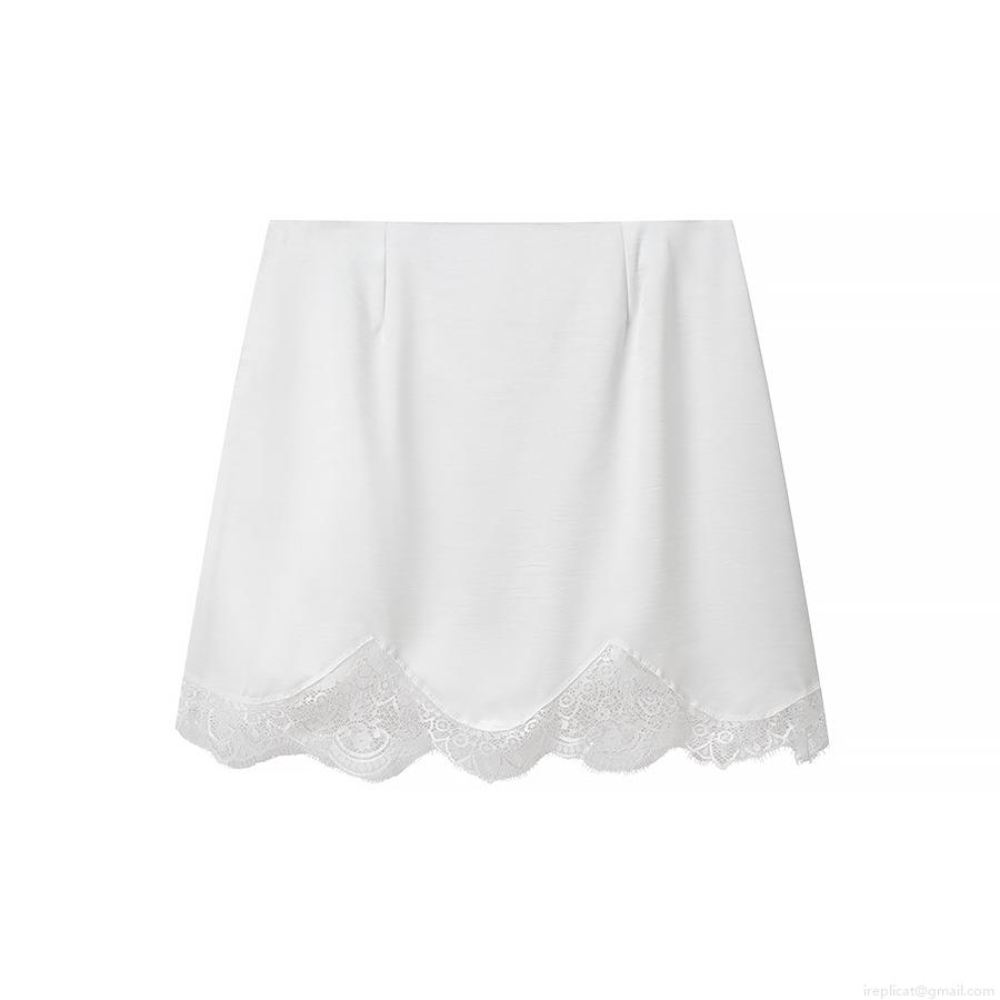 • Women's Sexy Satin Lace Trim Mini Skirt Solid Color High Waist A-Line Bodycon Short Skirt Streetwear Party Clubwear Summer Spring Fashion