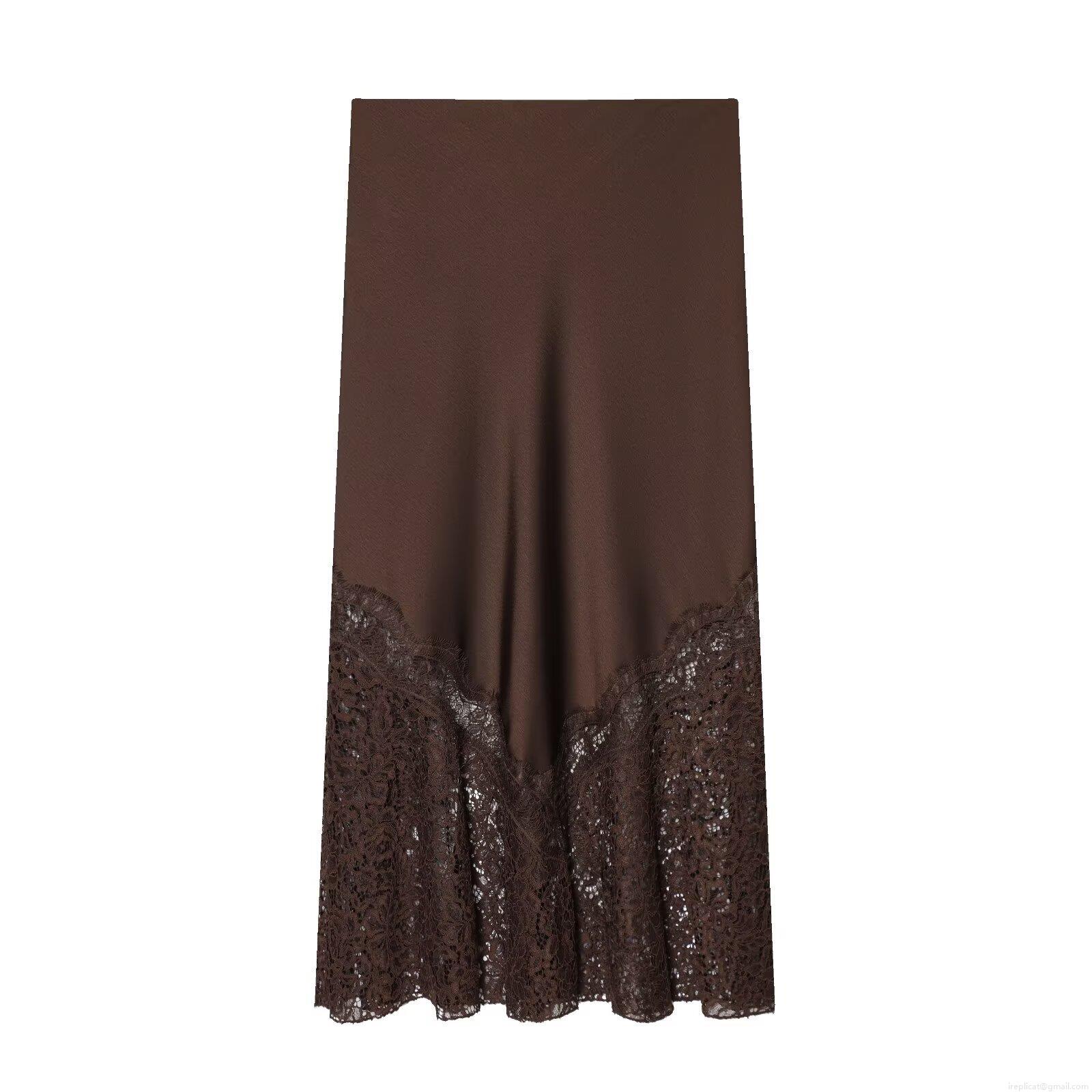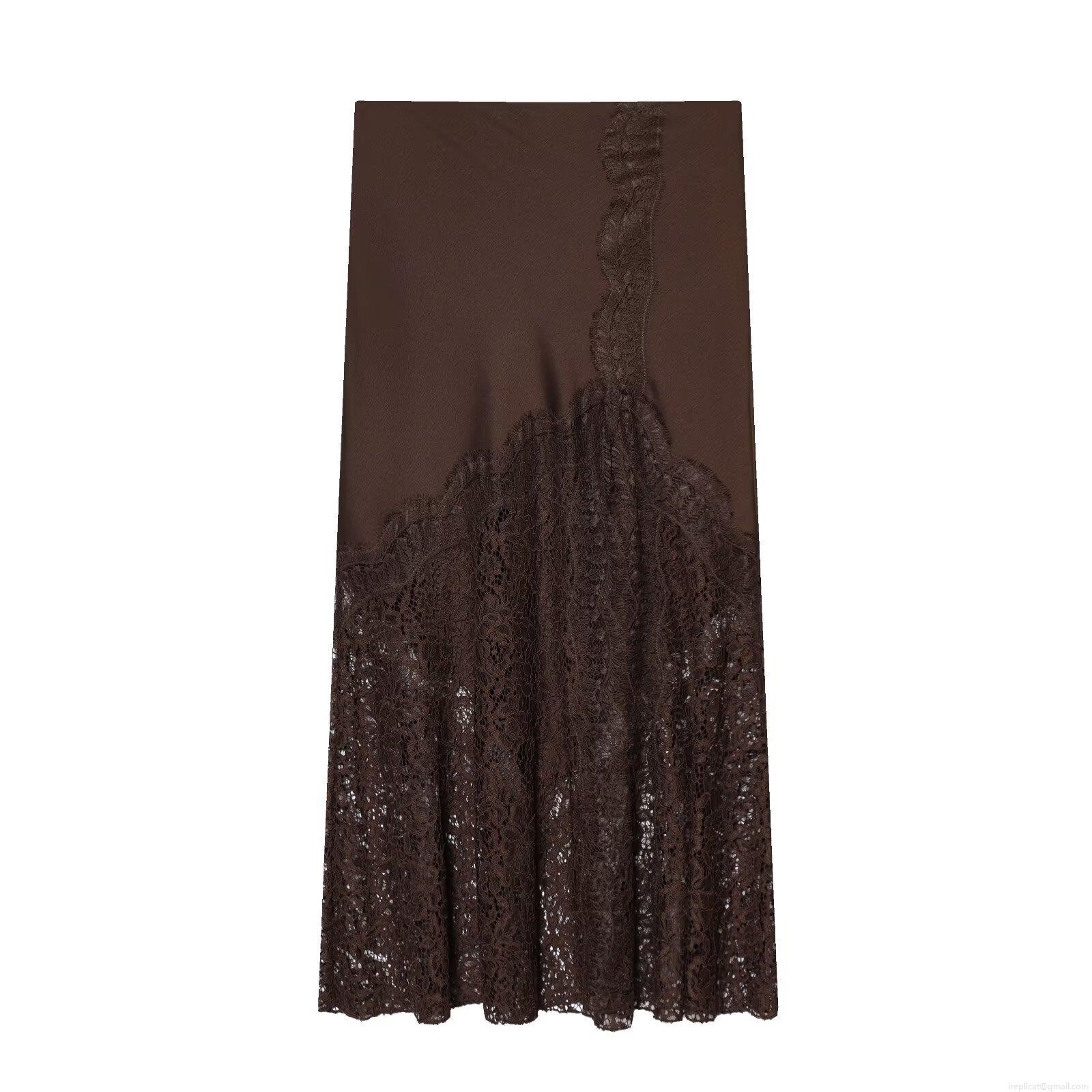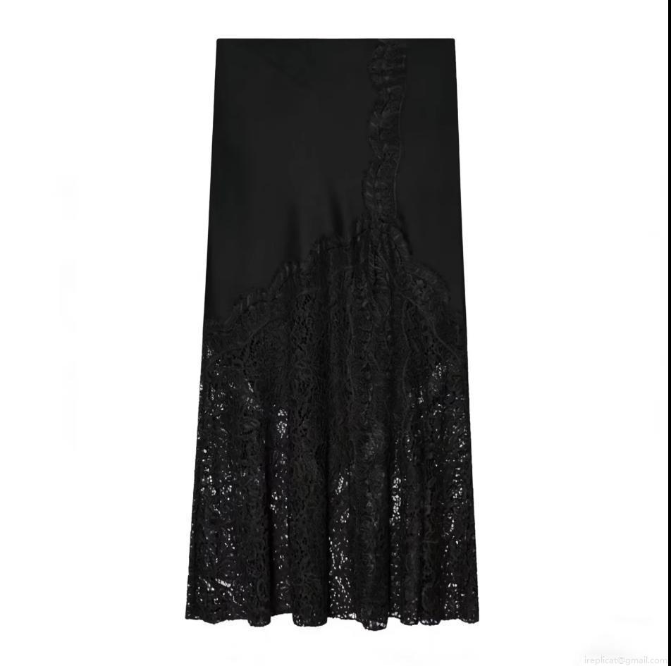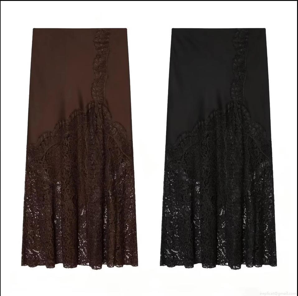 Women's Sexy Satin Midi Skirt Lace Patchwork High Waist Side Zipper Elegant Streetwear Solid Color Long Skirt For Women Party Date Office Daily Wear