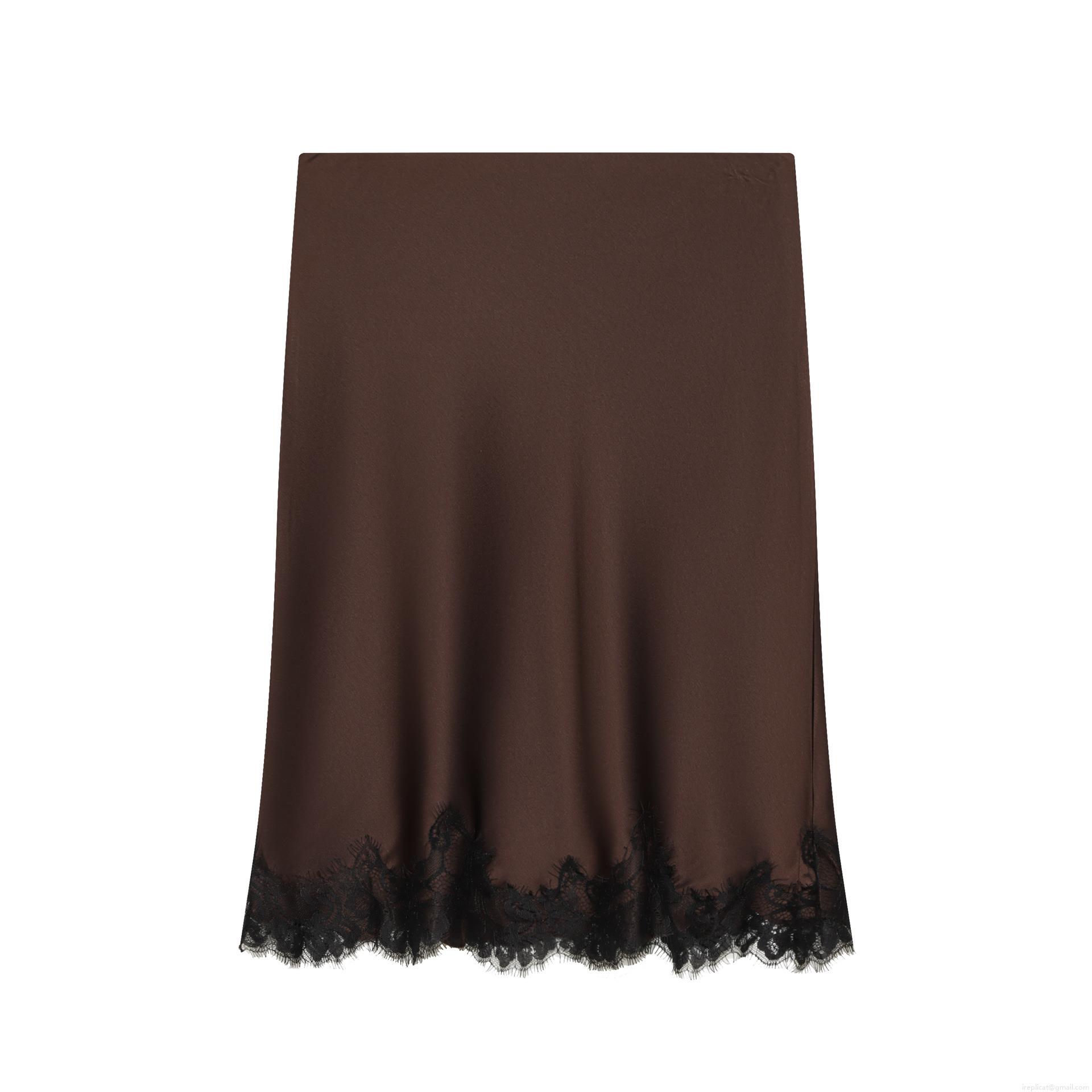 • Women's Sexy Satin Skirt with Eyelash Lace Hem Trim Solid Color High Waist Straight Bodycon Mini Skirt for Party Clubwear Streetwear