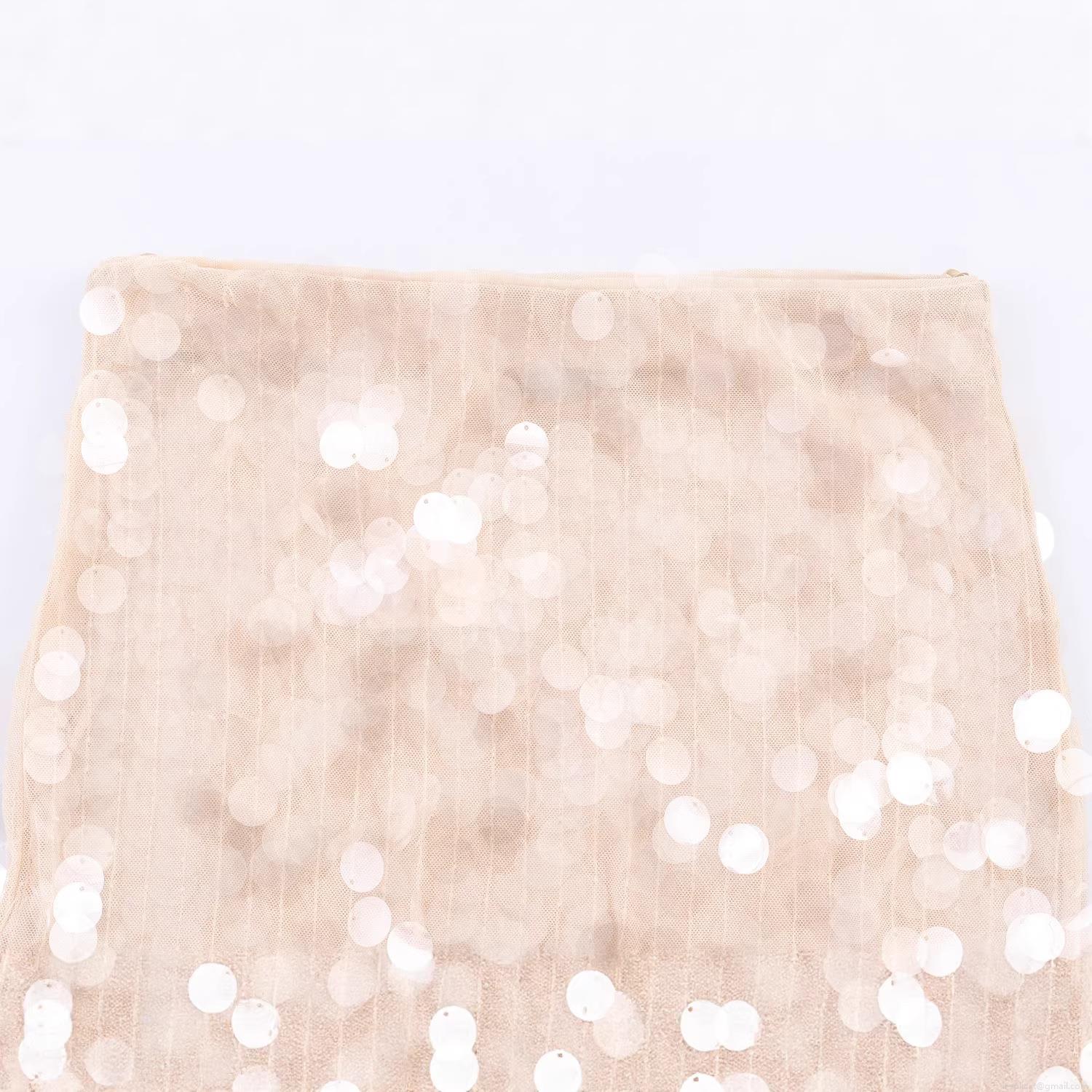 • Women's Sexy Sequin Mesh Midi Skirt High Waist Sparkling Straight Tulle Skirt Elegant Party Clubwear Street Style Pencil Skirt Nude Pink Champagne