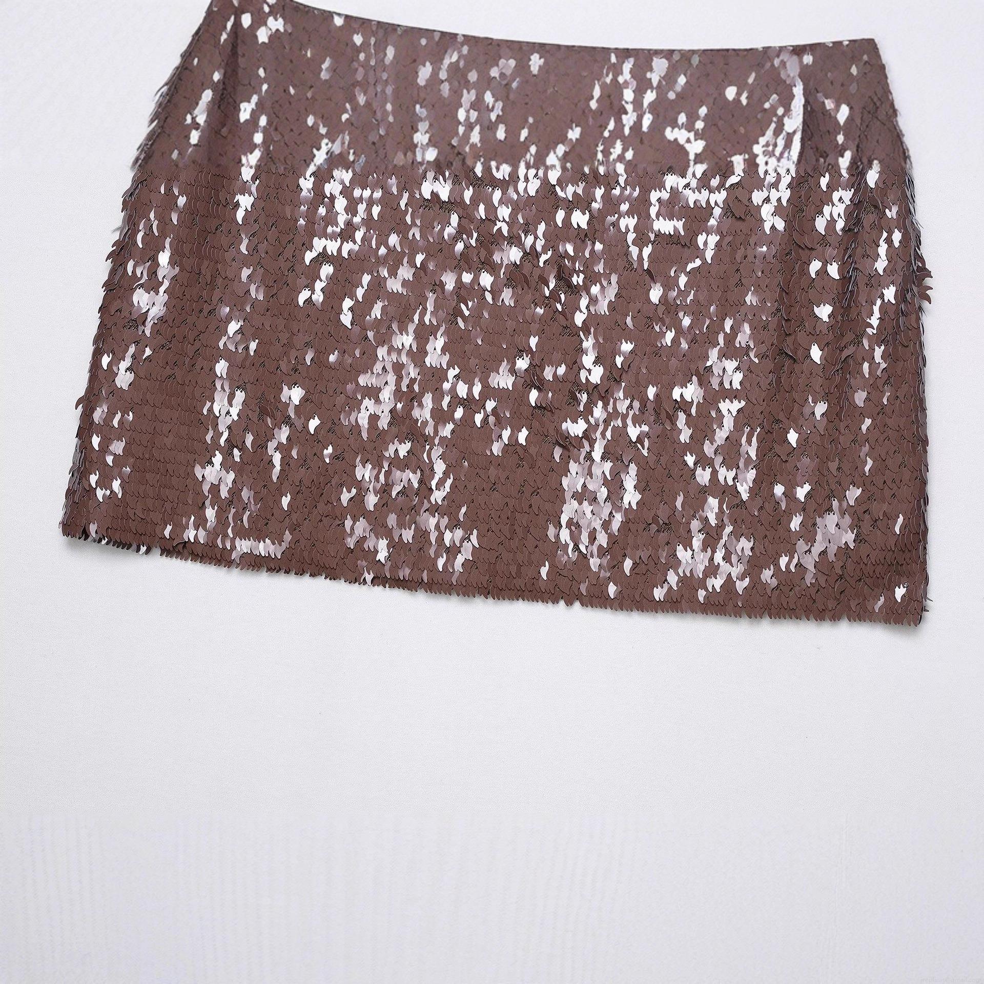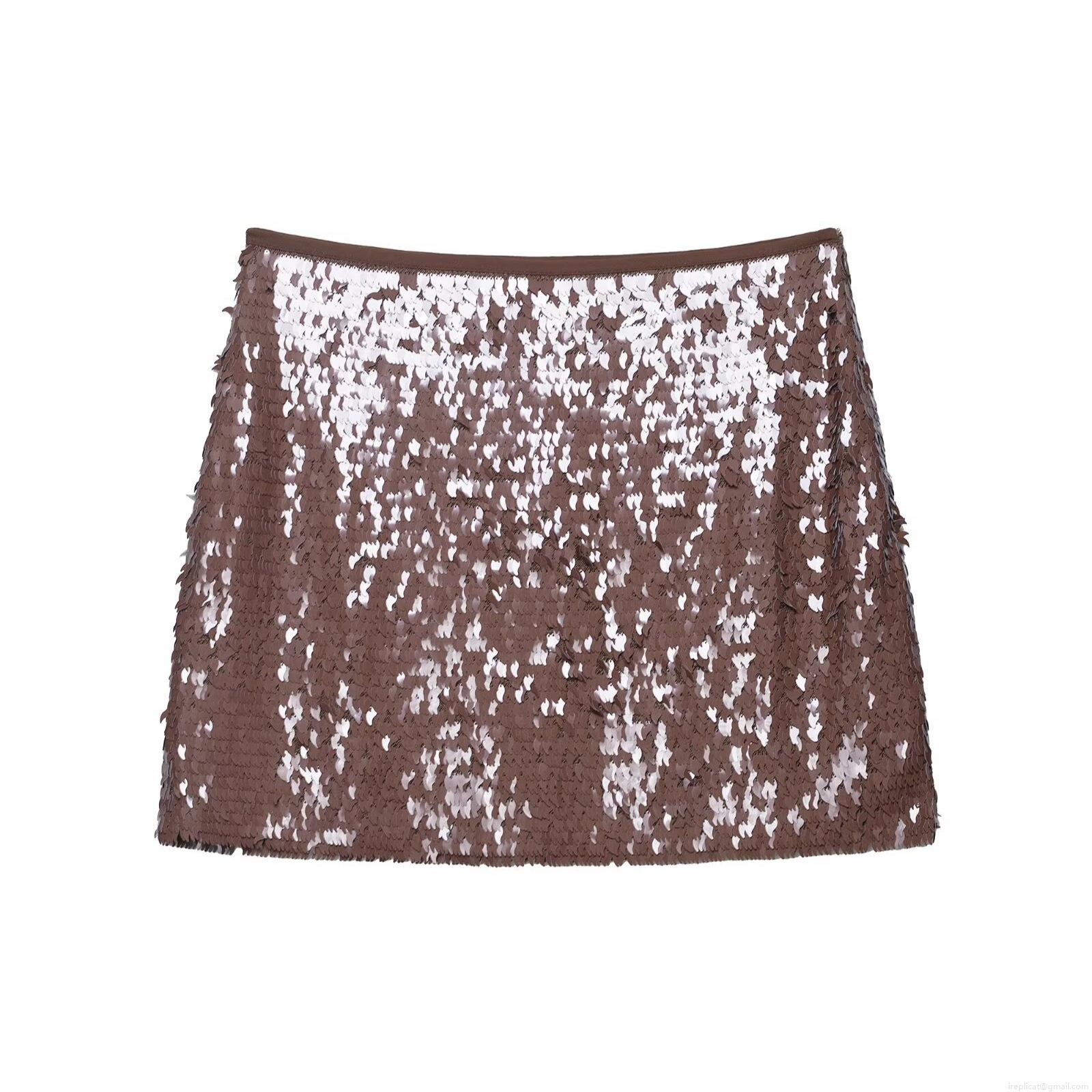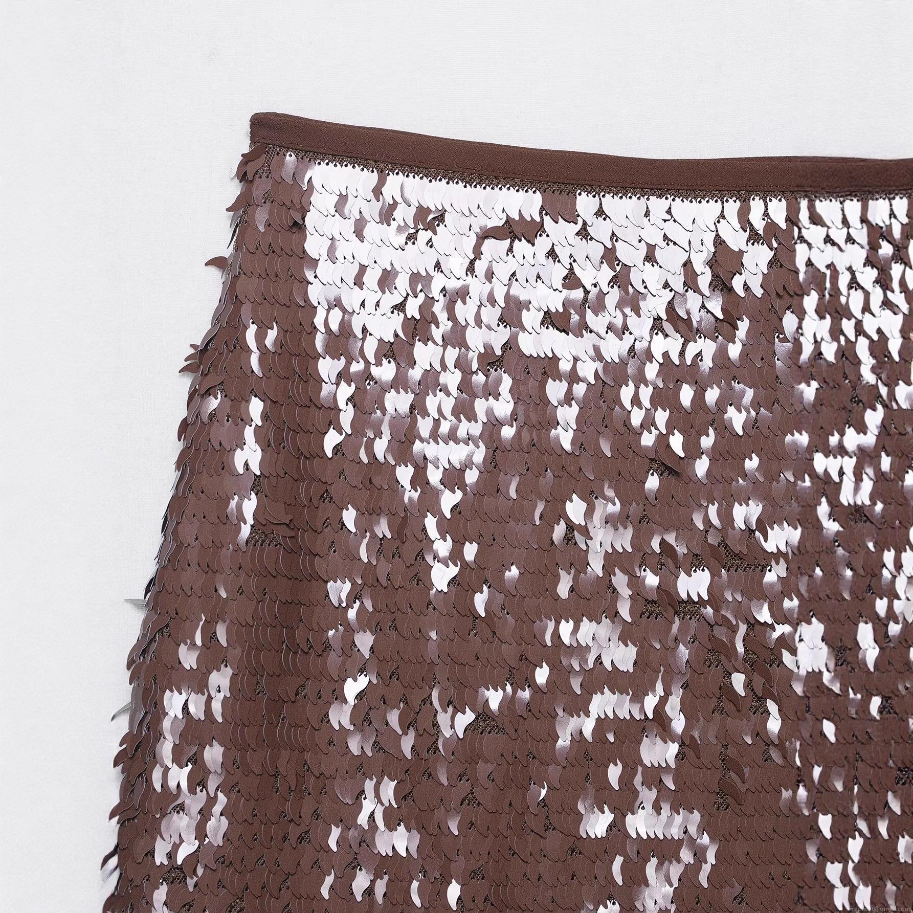 • Women's Sexy Sequin Mini Skirt Sparkly Dark Brown Glitter Bodycon Short Skirt High Waist Polyester Clubwear Party Night Out Clothing