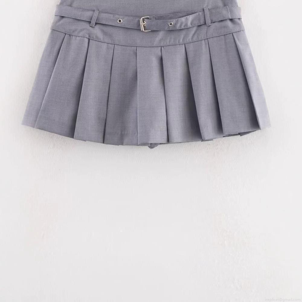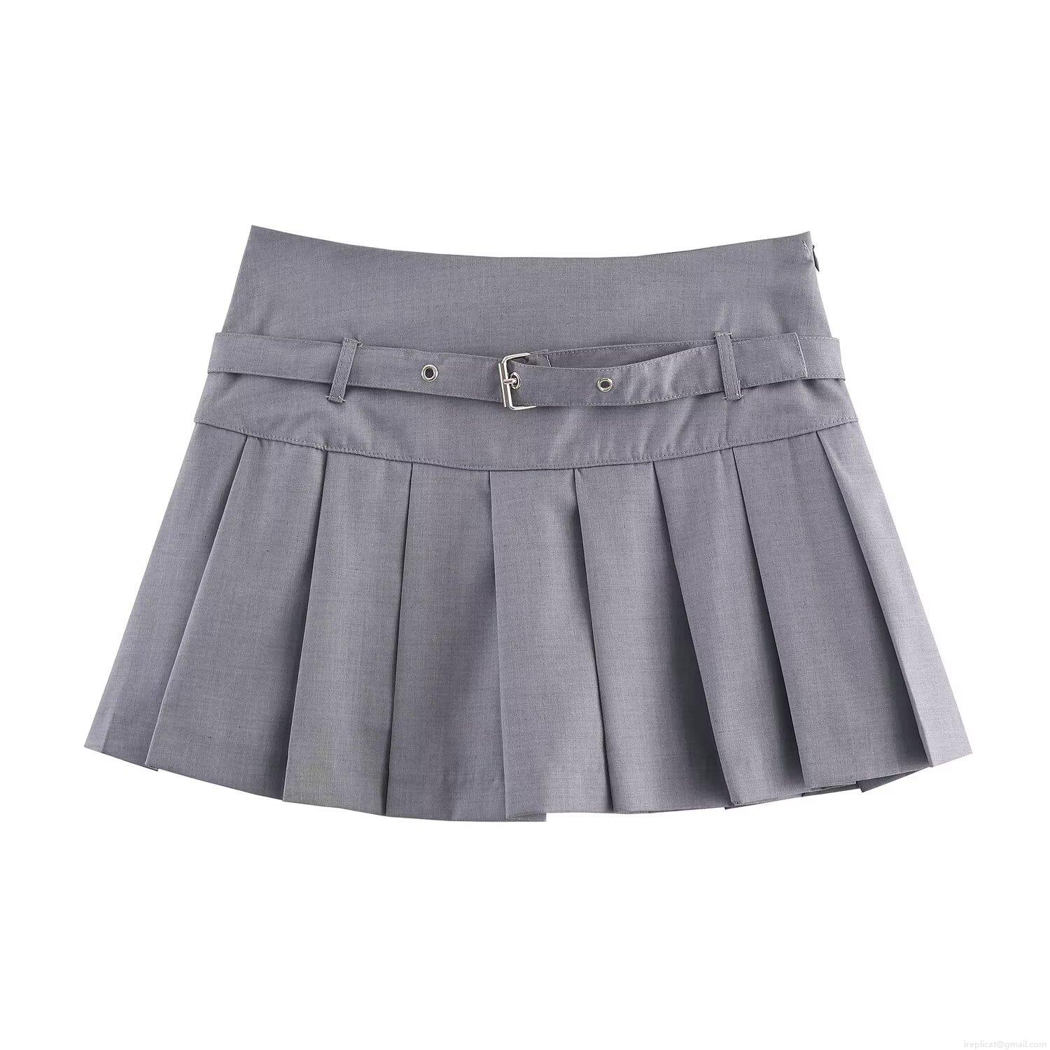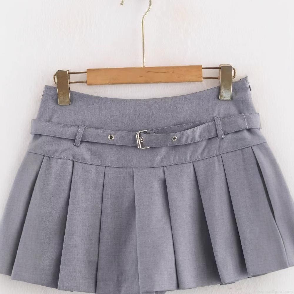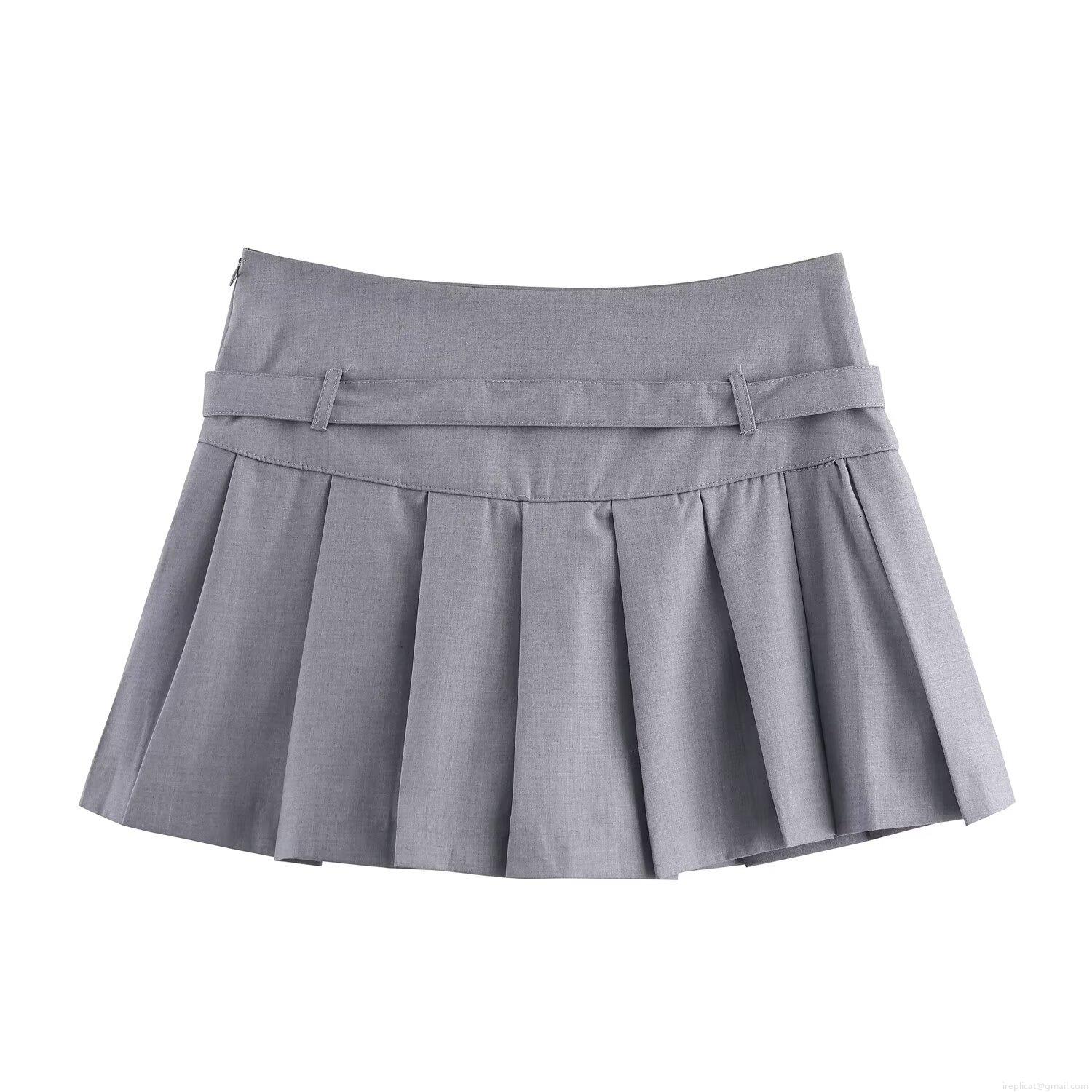 • Women's Sexy Silver Gray Pleated Mini Skirt High Waist Solid Color Polyester Short Skirt With Belt Streetwear Fashionable Casual Skirt For Women