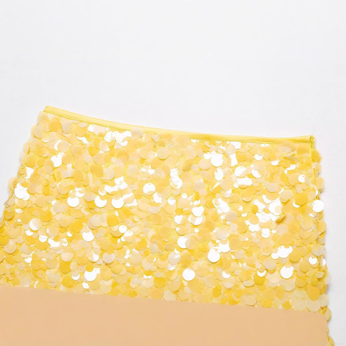 • Women's Sexy Yellow Sequin Mini Skirt Shiny A-Line High Waist Short Skirt For Party Club Night Out Street Style Fashion Evening Skirt