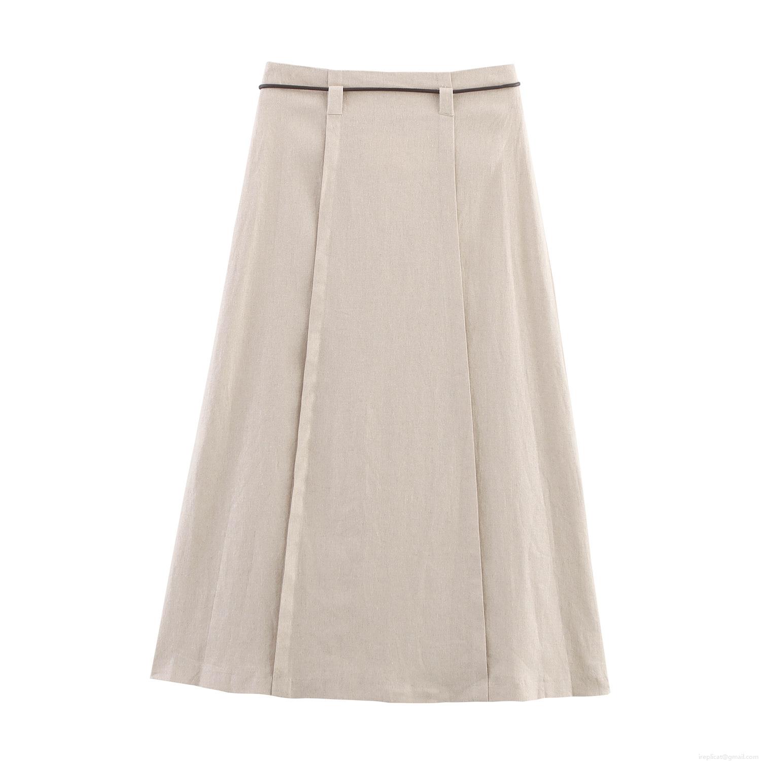 • Women's Solid Color A-Line Midi Skirt With Waist Belt Elegant Linen-Like Polyester Casual Long Skirt For Daily Vacation Simple Style