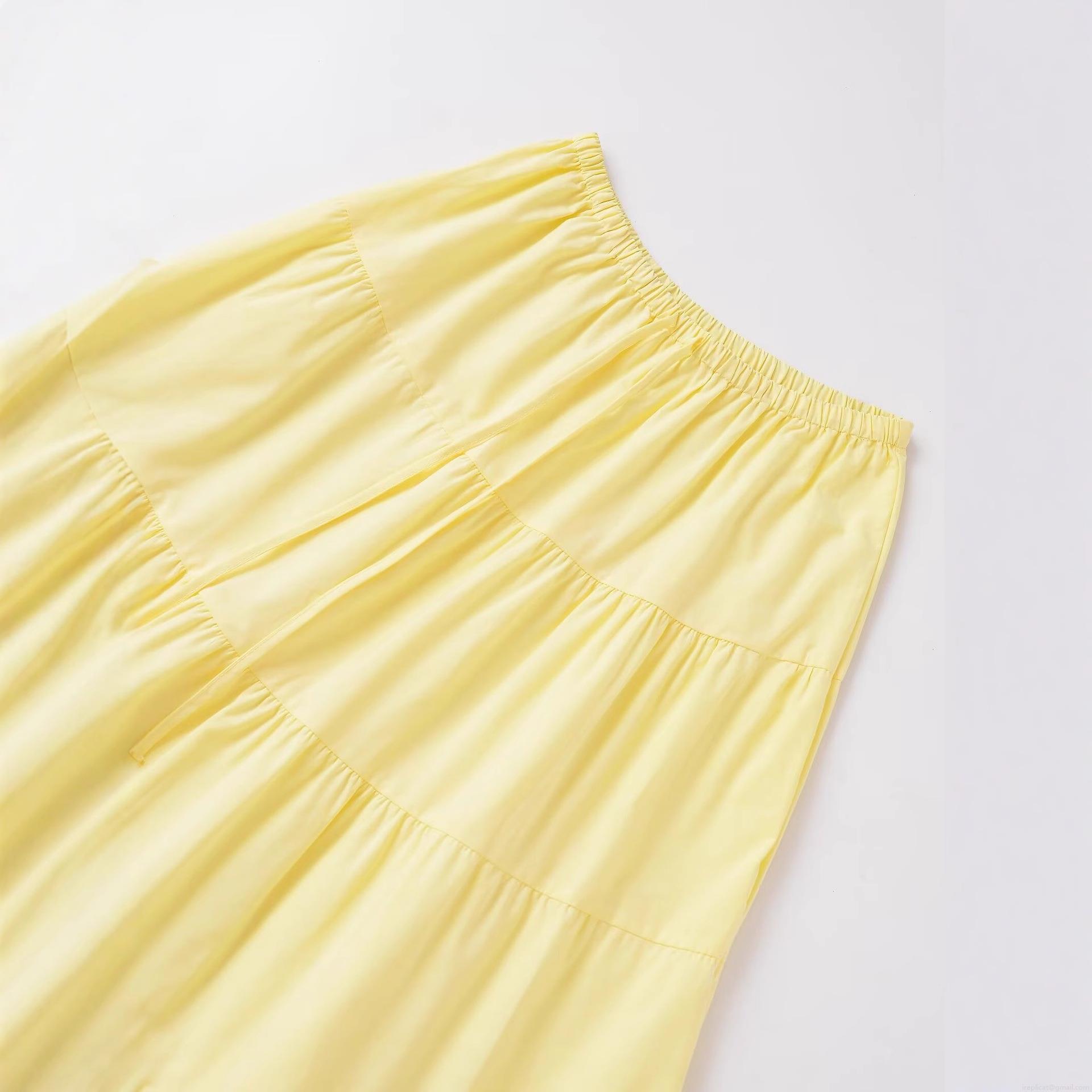 • Women's Solid Color Tiered Maxi Skirt Polyester High Waist Elastic Drawstring A-Line Long Cake Skirt For Summer Beach Daily Casual Streetwear