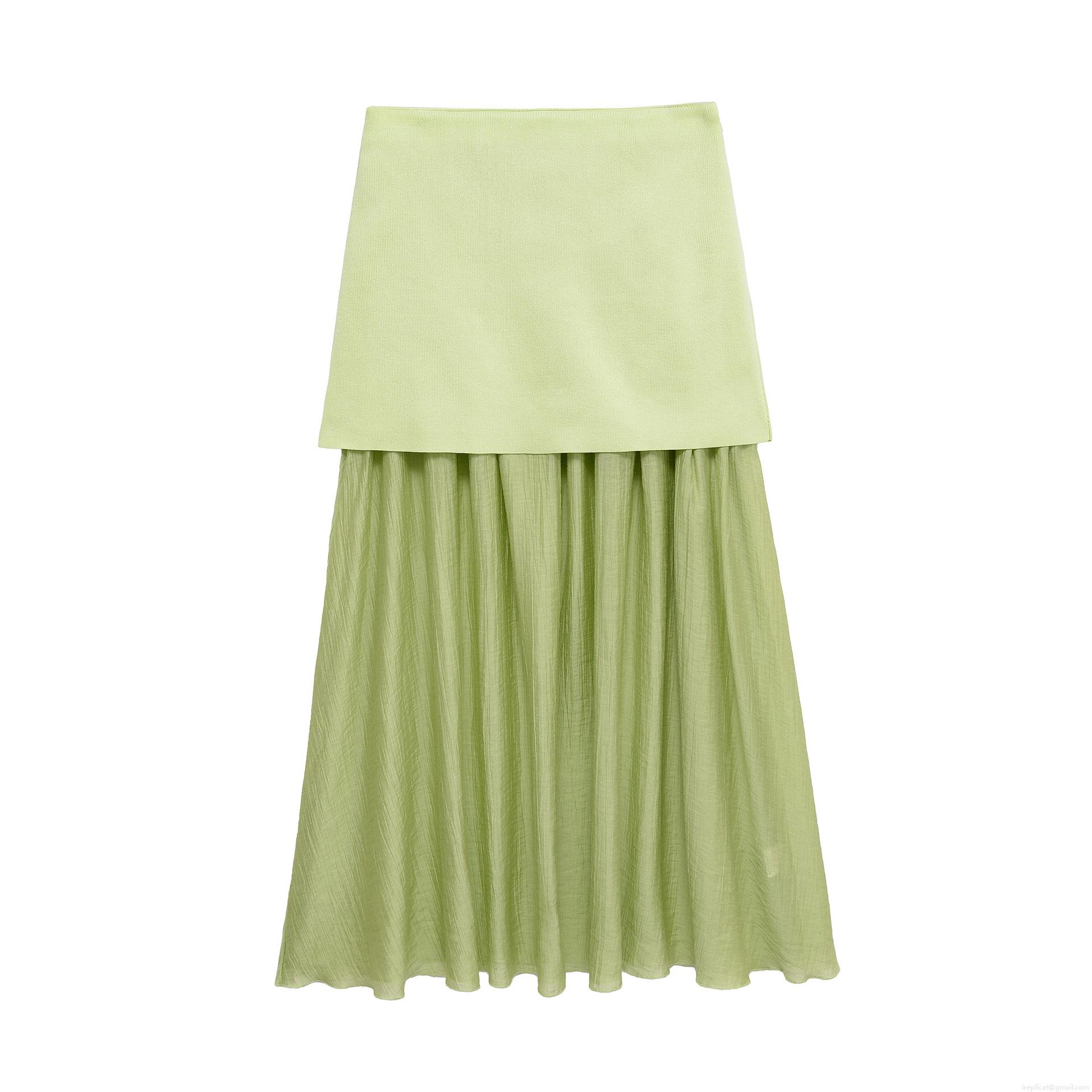 • Women's Spliced Midi Skirt Knit Chiffon Pleated High Waist Patchwork A-Line Skirt Elegant Daily Streetwear Skirt For Women