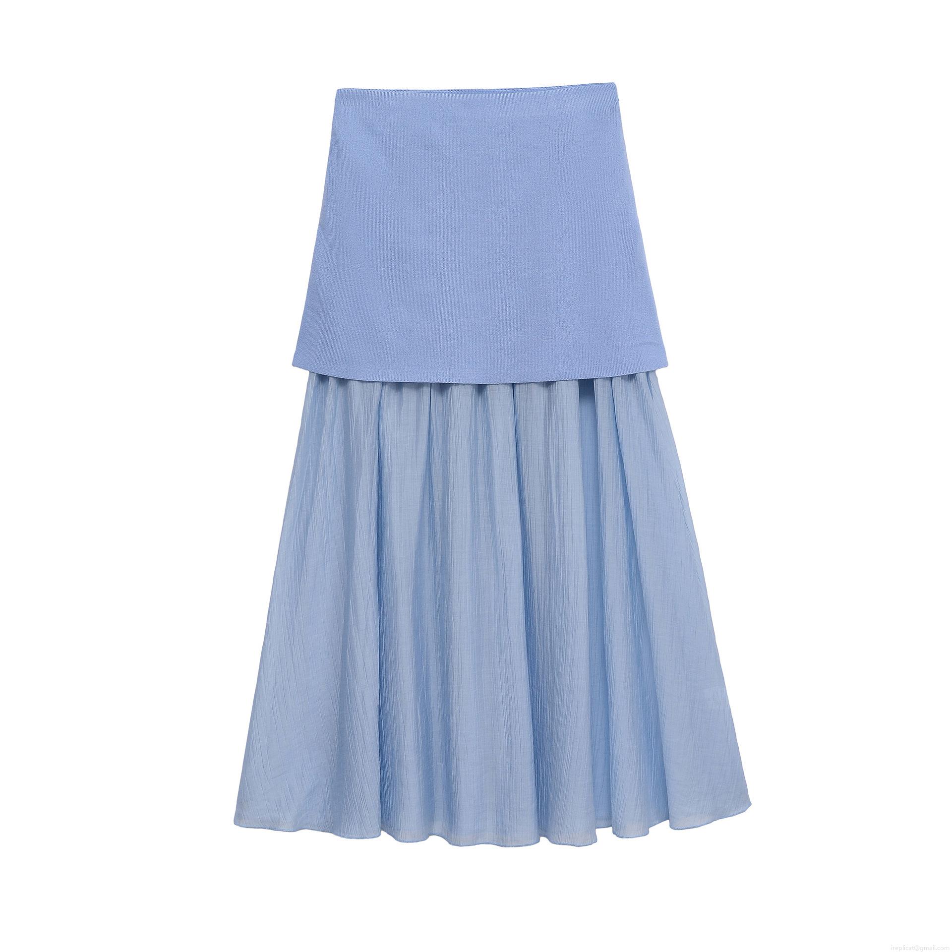 5 stars – This spliced knit chiffon midi skirt is **elegant, unique and extremely flattering**! Made of soft knit and airy chiffon patchwork fabric, it’s comfortable, lightweight and stylish to wear. The high waist pleated A-line design slims your figure beautifully and modifies hip lines gently. Delicate splicing details add a fashionable and elegant touch, perfect for daily wear, dates and streetwear. Well-stitched, true to size, high-quality and very feminine — highly recommended!