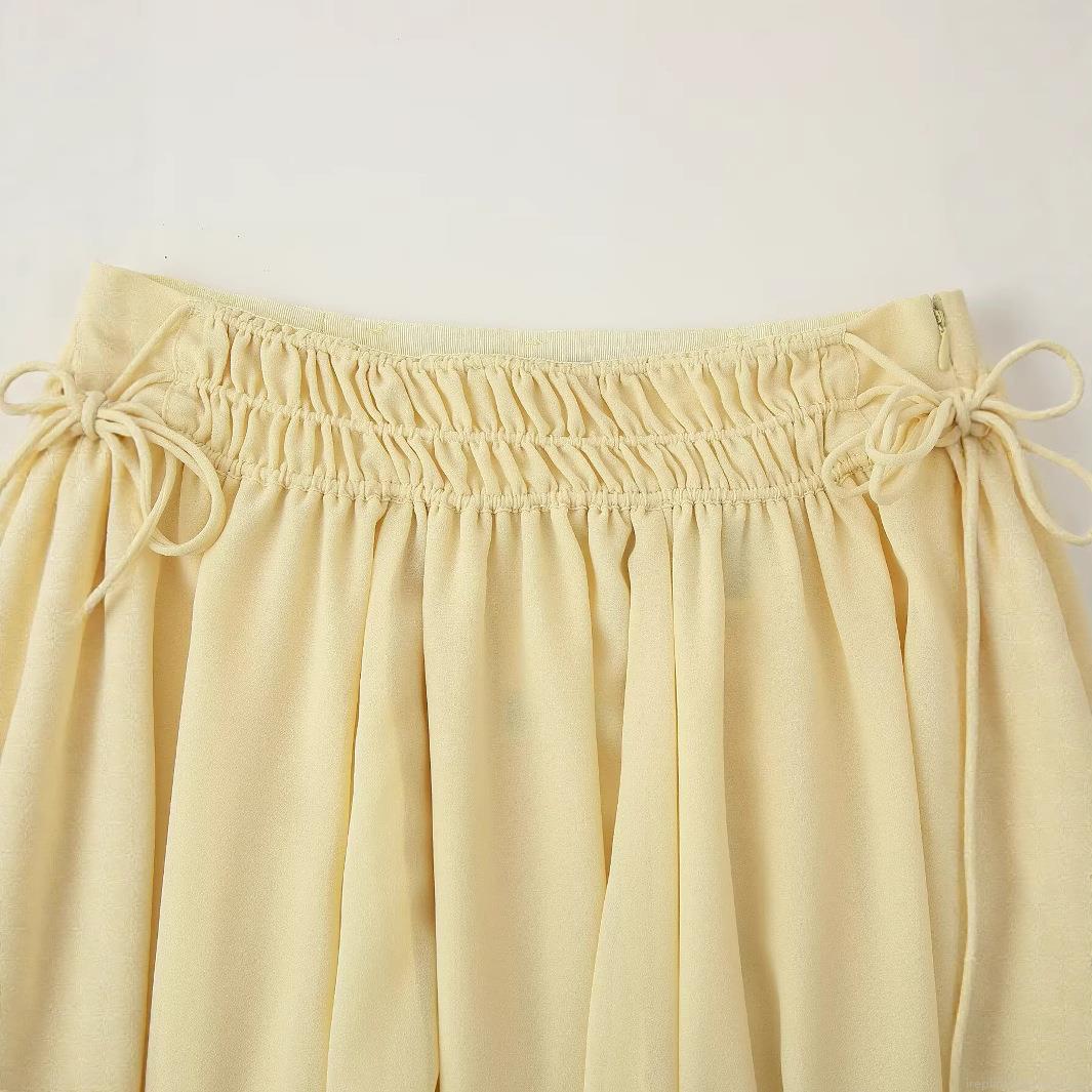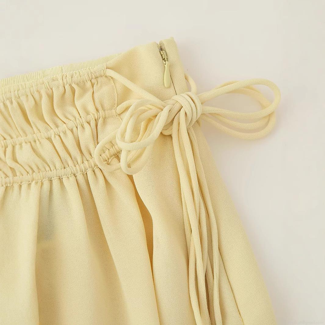 Solid Color, Pleats, Drawstring, Elastic Waistband, Bow Tie, Irregular Hem, Bundling Process