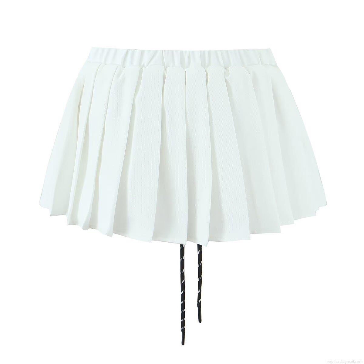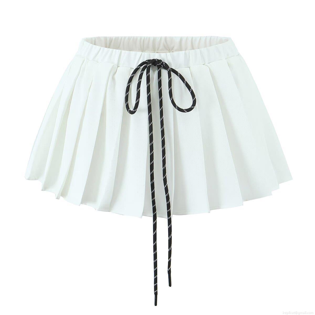 • Women's Summer Pleated Mini Skirt Polyester Spandex A-Line Short Skirts With Drawstring Elastic High Waist Casual Streetwear Bottoms
