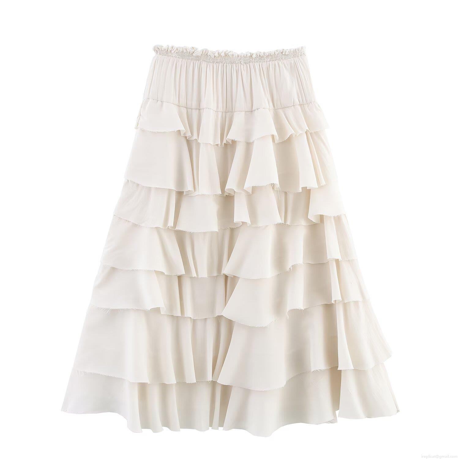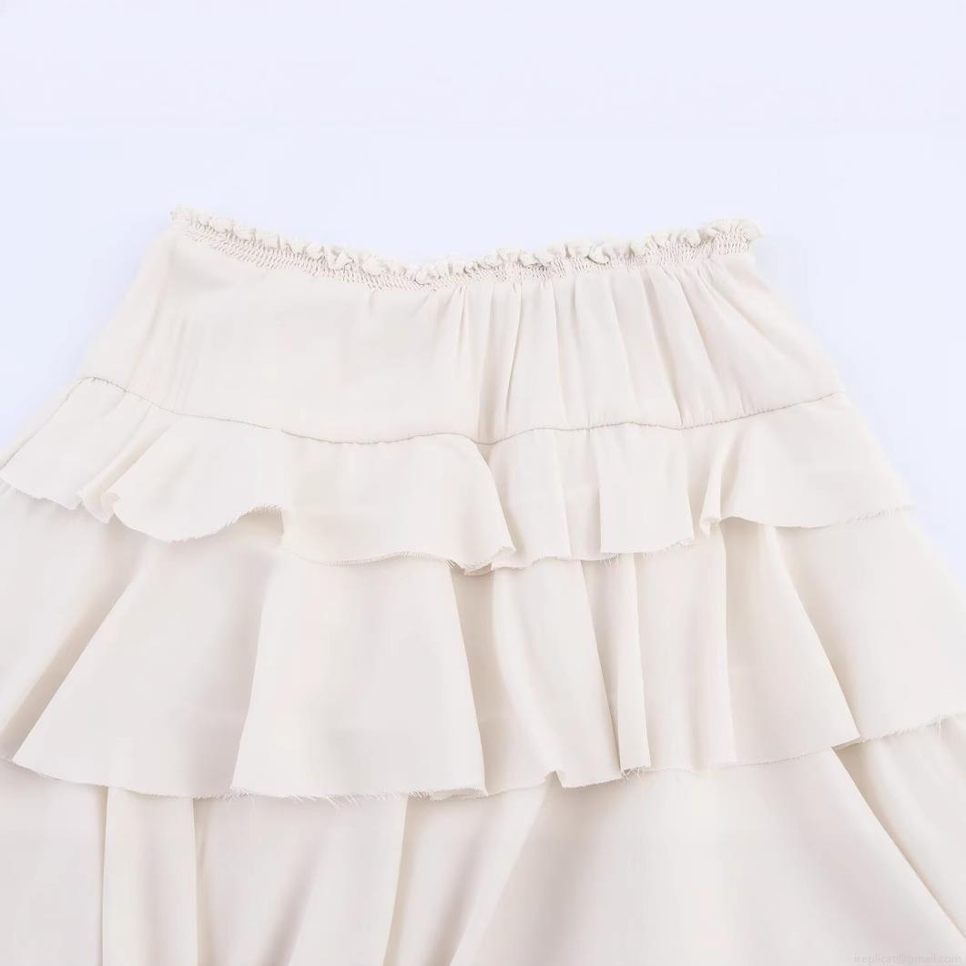 • Women's Summer Tiered Ruffle Cake Mini Skirt High Elastic Waist Short Skirt A-Line Solid White Polyester Skirt for Streetwear Casual Daily Fashion