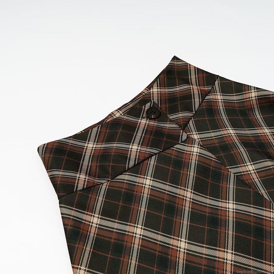 • Women's Vintage Brown Plaid A-Line Midi Skirt High Waist Asymmetric Hem Button Front Casual British Style Skirt For Autumn Winter