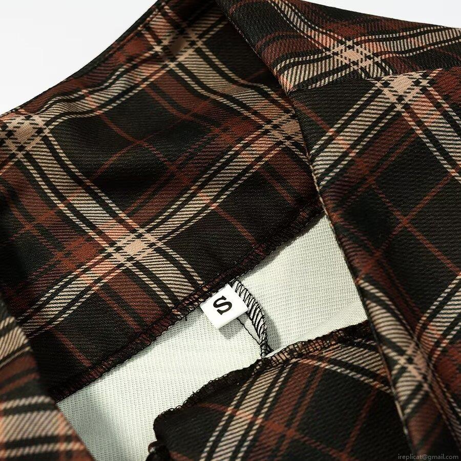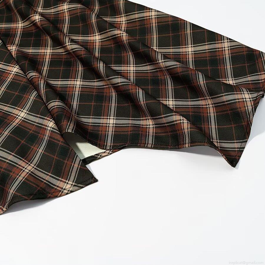 Checkered Pattern, High-waisted, Button Decoration, Asymmetrical Hem