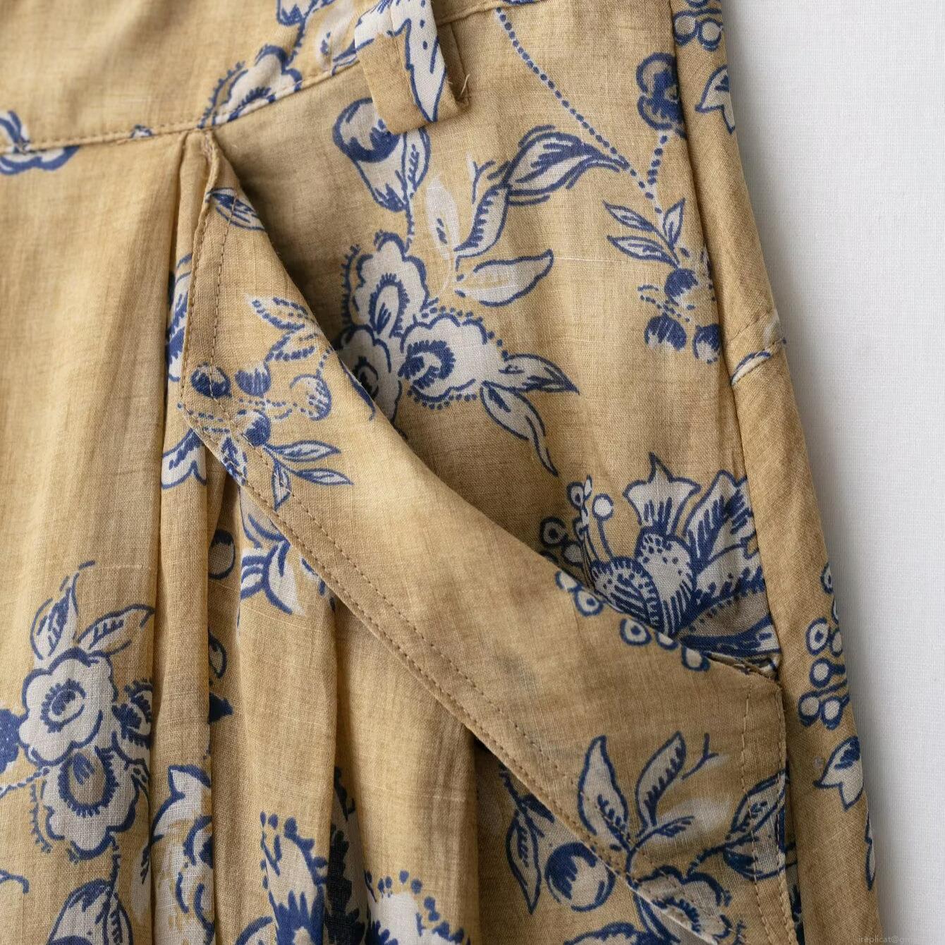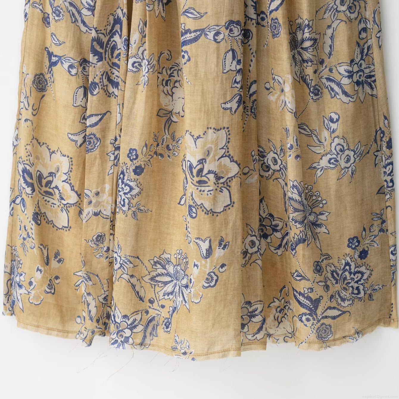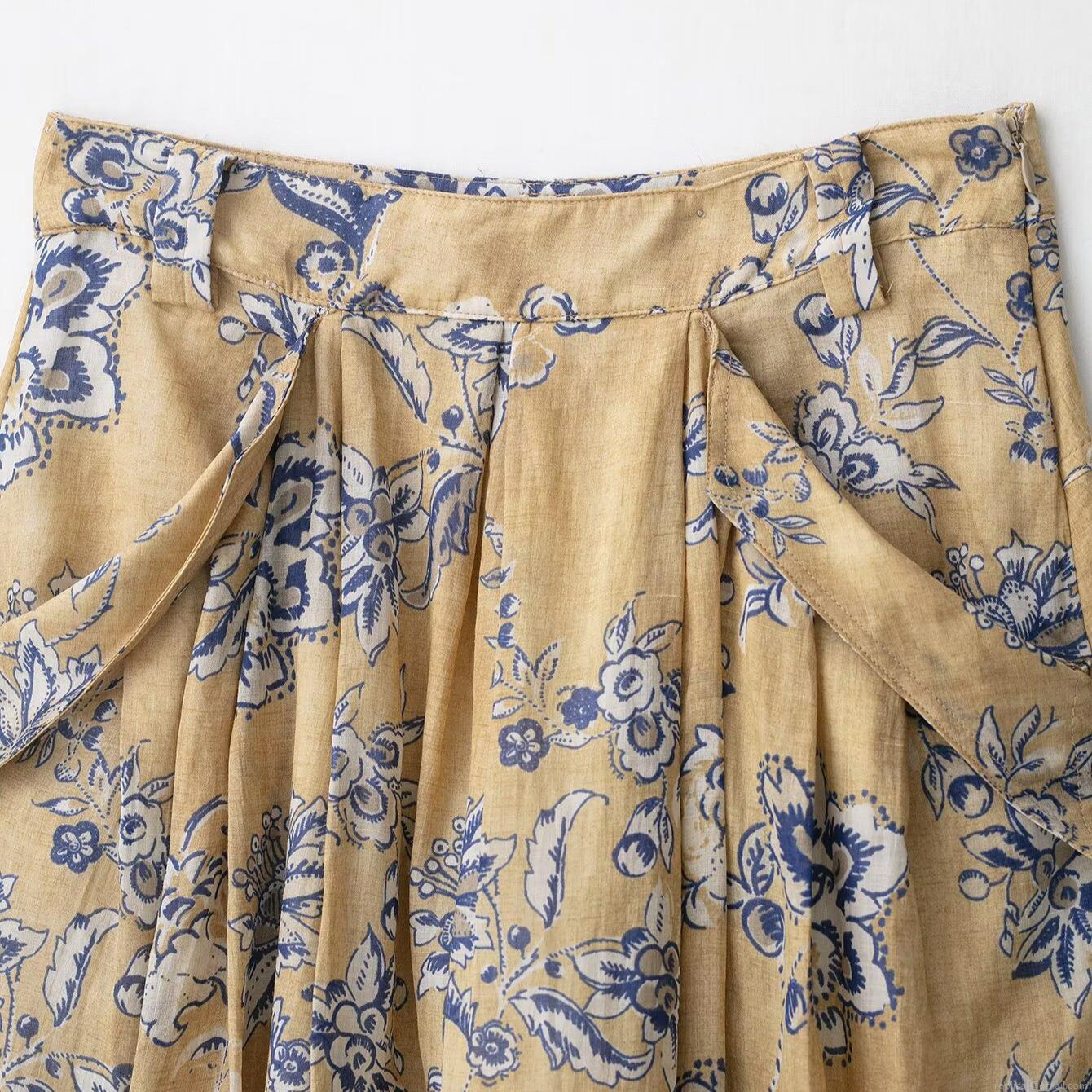 • Women's Vintage Floral Print High Waist A-Line MIDI Skirt Ginger Yellow Cotton Linen Blend Elegant Commute Summer Vacation Skirt