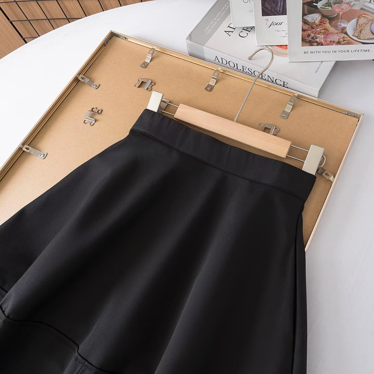 • Women's Winter High Waist A-Line Skirt Elegant Solid Color Polyester Long Skirt With Stitching Detail For Office Daily Wear Women
