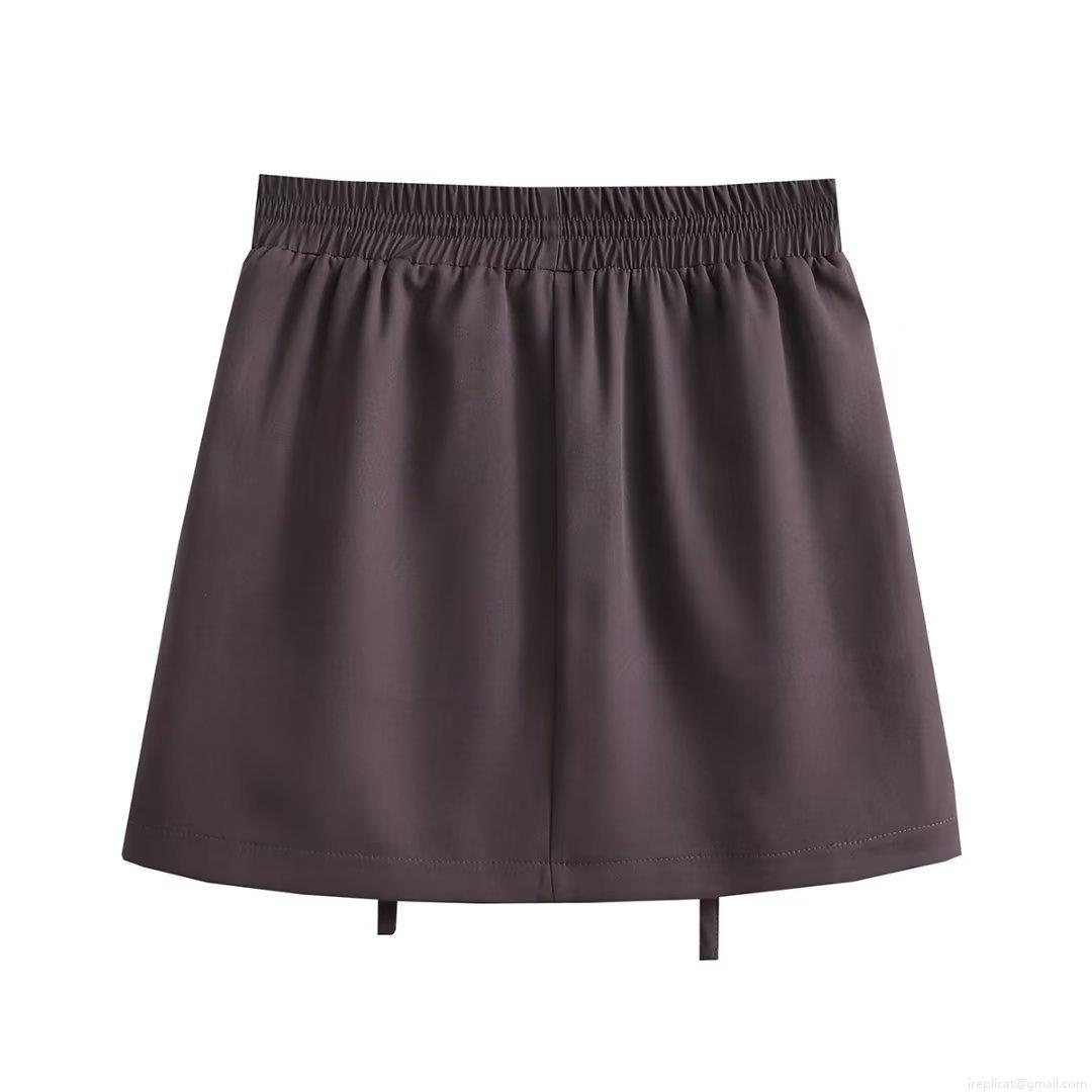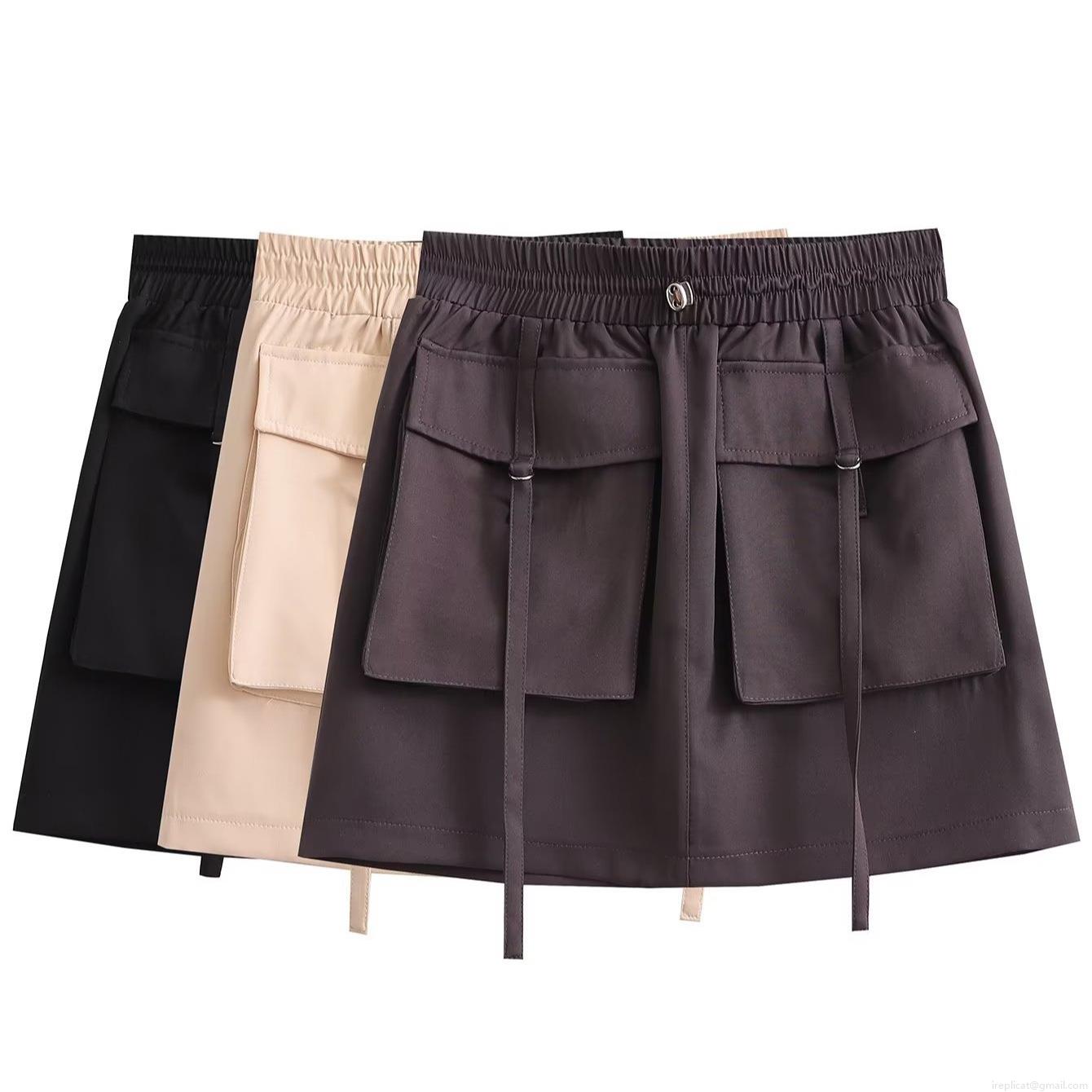 • Women's Y2K Cargo Skirt Polyester High Waist Multi-Pocket A-Line Mini Skirt With Streamers Fashion Streetwear Short Skirts