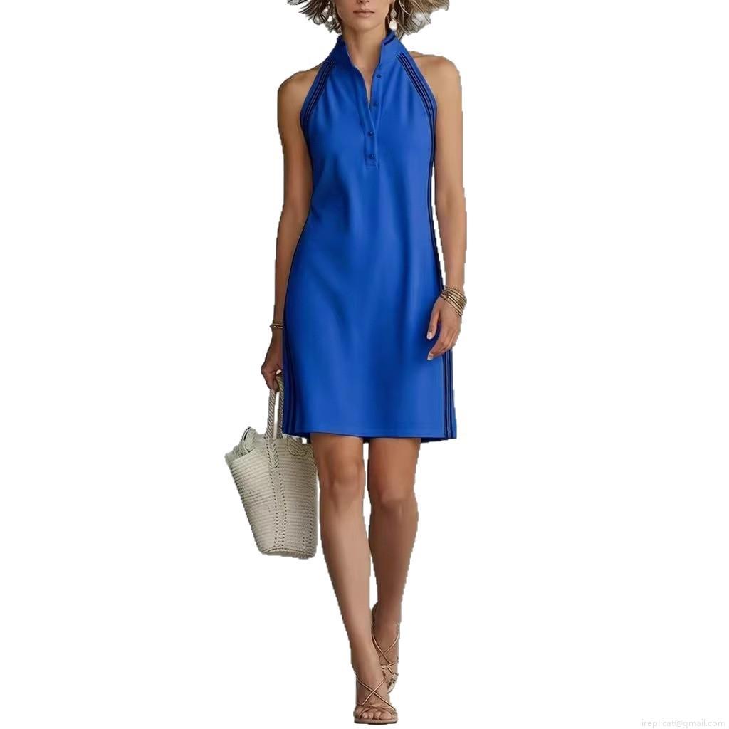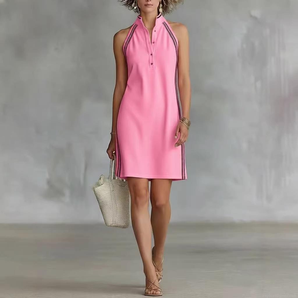 • Women's Sleeveless Polo Mini Dress Cotton Blend Sporty Casual Contrast Stripe Button Up Tennis Style Sundress for Summer Daily Leisure