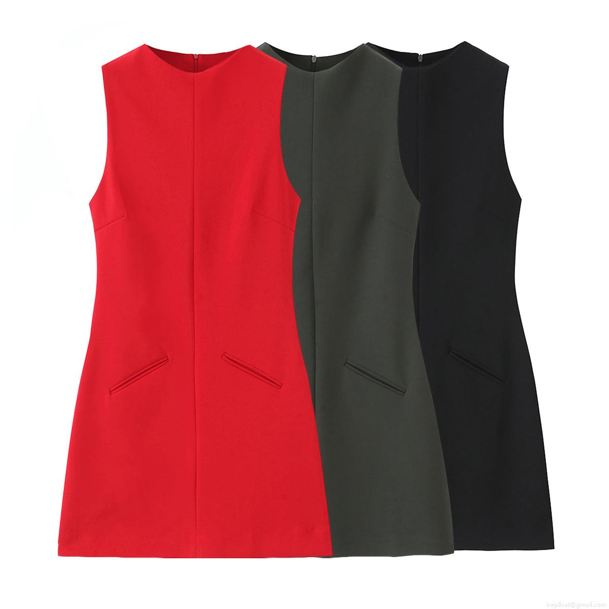 • Women's Sleeveless Round Neck Mini A-Line Dress With Pocket Solid Color Polyester Woven Slim Fit Short Dress For Summer Party Casual Wear