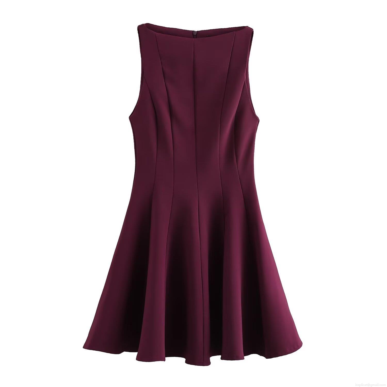 • Women's Sleeveless Round Neck Mini Dress Polyester Solid Color Pleated Flare A-Line Party Dress Casual Short Skirt with Back Zipper for Women Streetwear