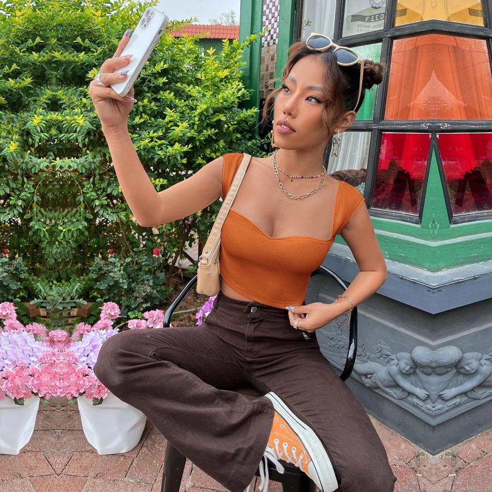 • Women's Square Neck Ribbed Knit Crop Top Sexy Slim Fit Sleeveless Tank Top Solid Color Summer Vest Streetwear for Women