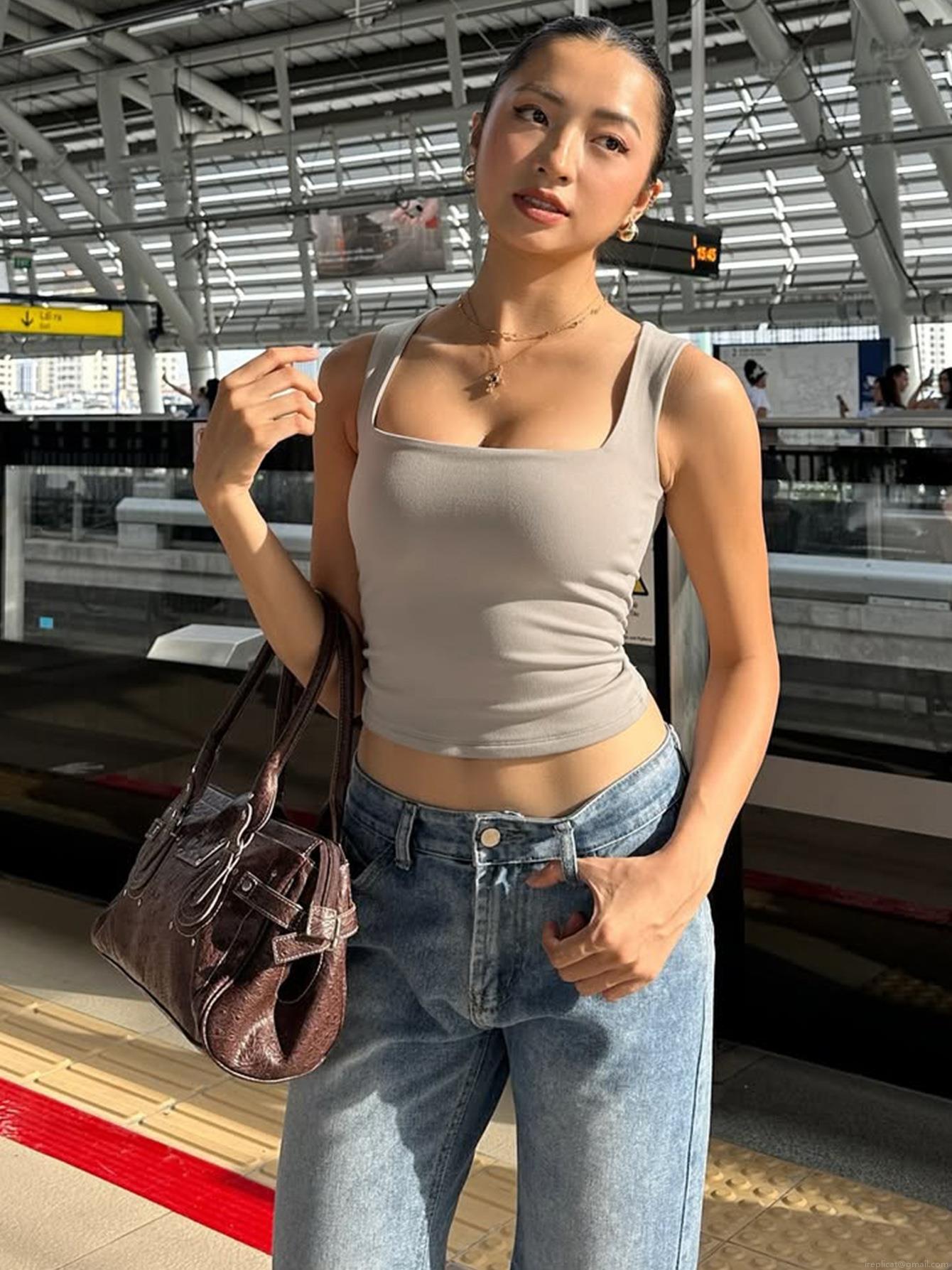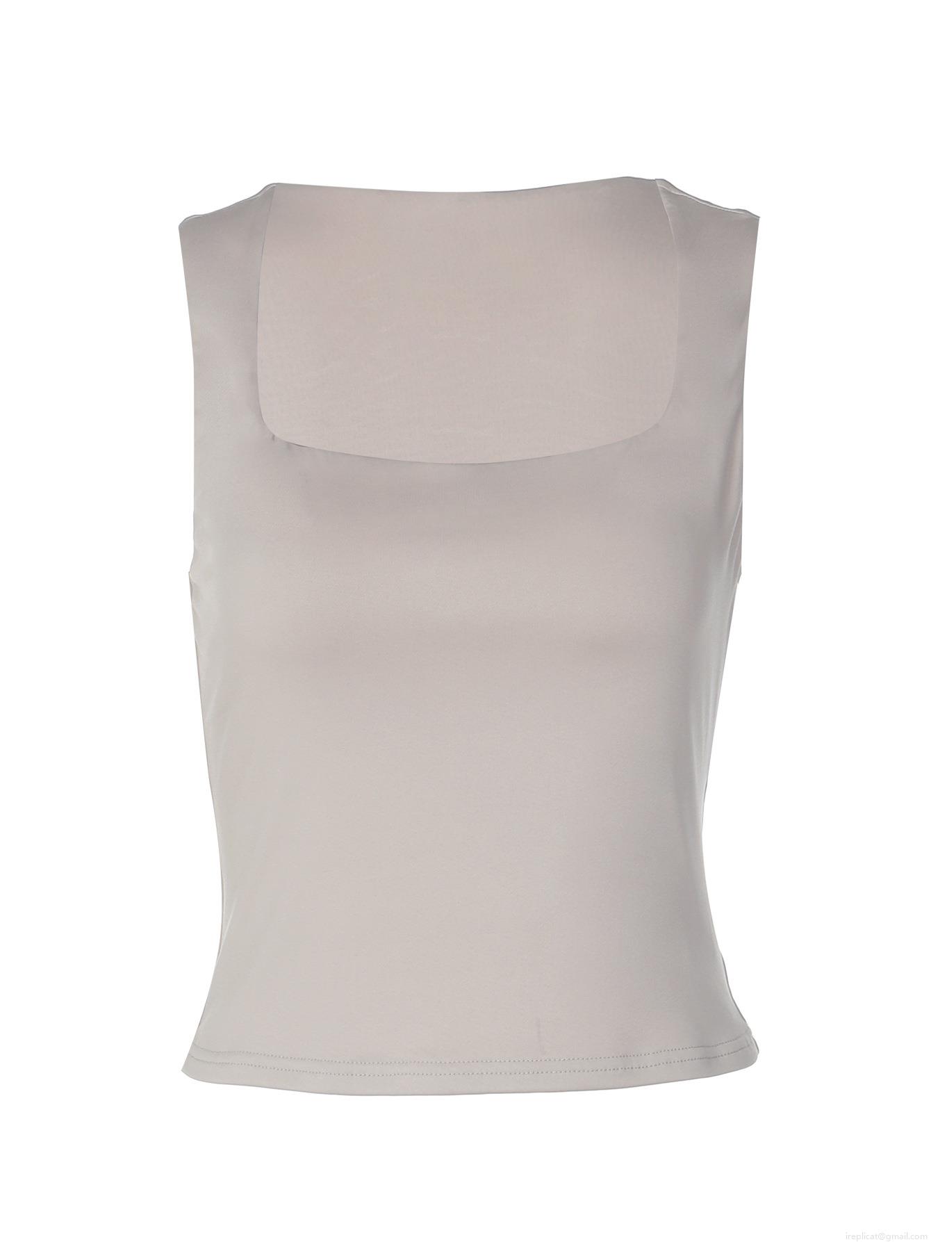 Solid Color, Slim Fit, Cropped Top, Square Neck Design, 工字背