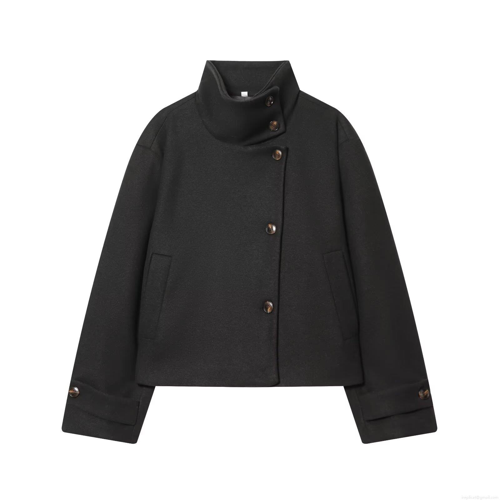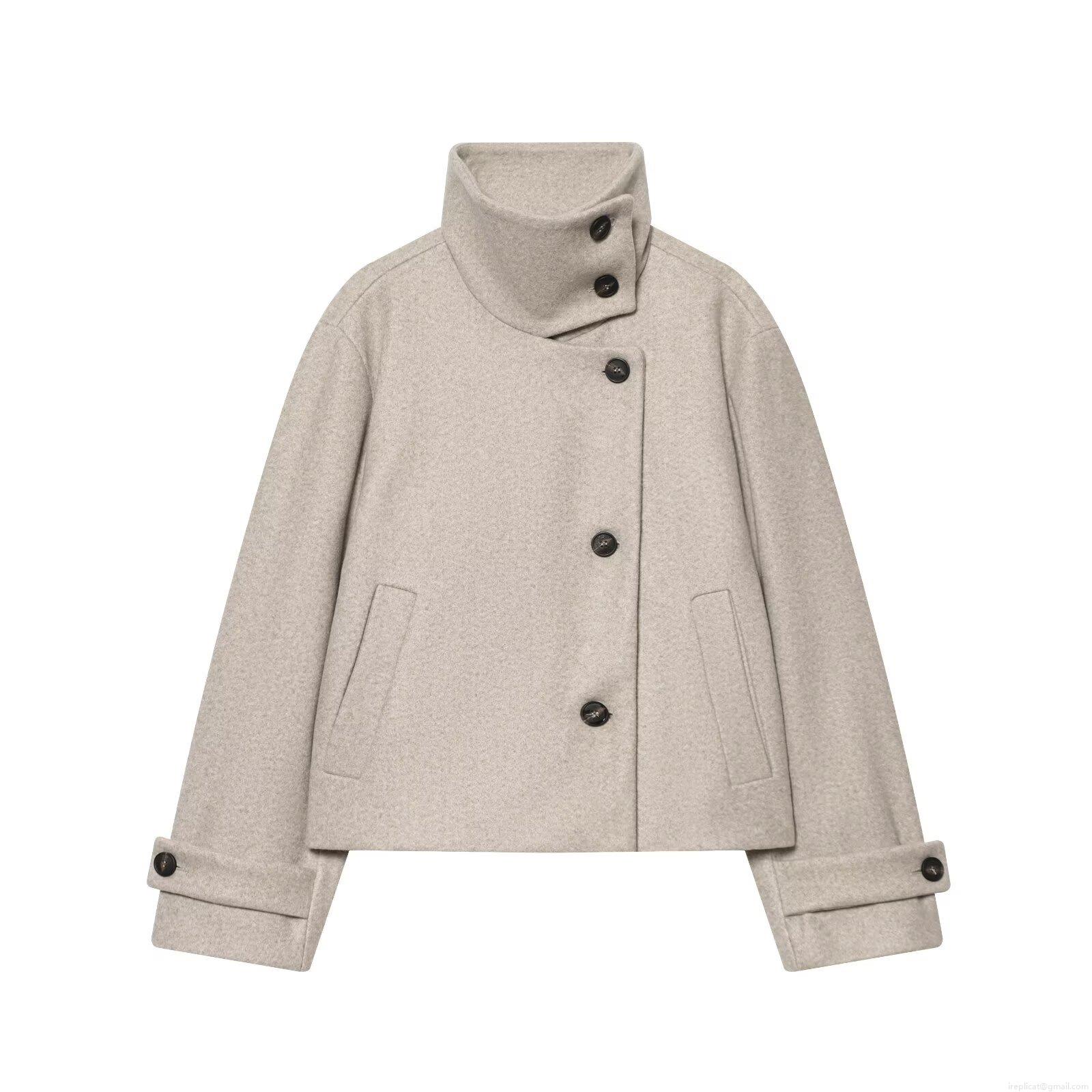 • Women's Stand Collar Woolen Jacket Coat Long Sleeve Asymmetric Button Short Loose Fit Outerwear For Daily Casual Streetwear Fashion Spring Autumn Winter