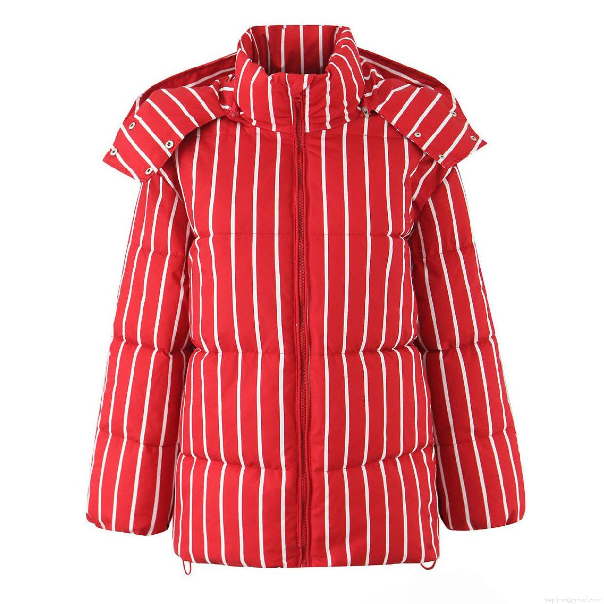 • Women's Striped Hooded Puffer Jacket Vintage Contrast Color Vertical Stripes Winter Warm Quilted Cotton-Padded Coat With Zipper For Ladies Outerwear