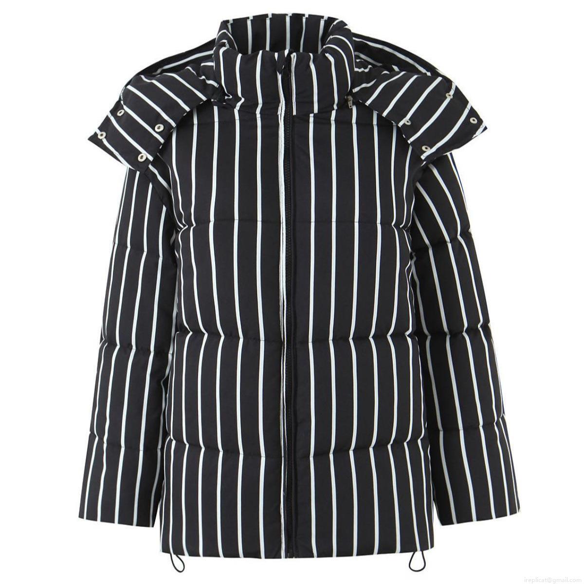 Women's Striped Hooded Puffer Jacket Vintage Contrast Color Vertical Stripes Winter Warm Quilted Cotton-Padded Coat With Zipper For Ladies Outerwear