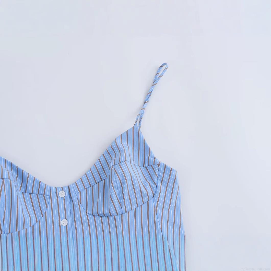 Color Blocking, Pleats, Buttons, Vertical Stripes, Thin Shoulder Straps