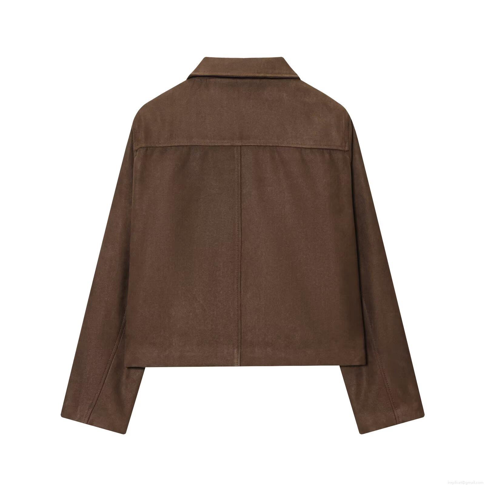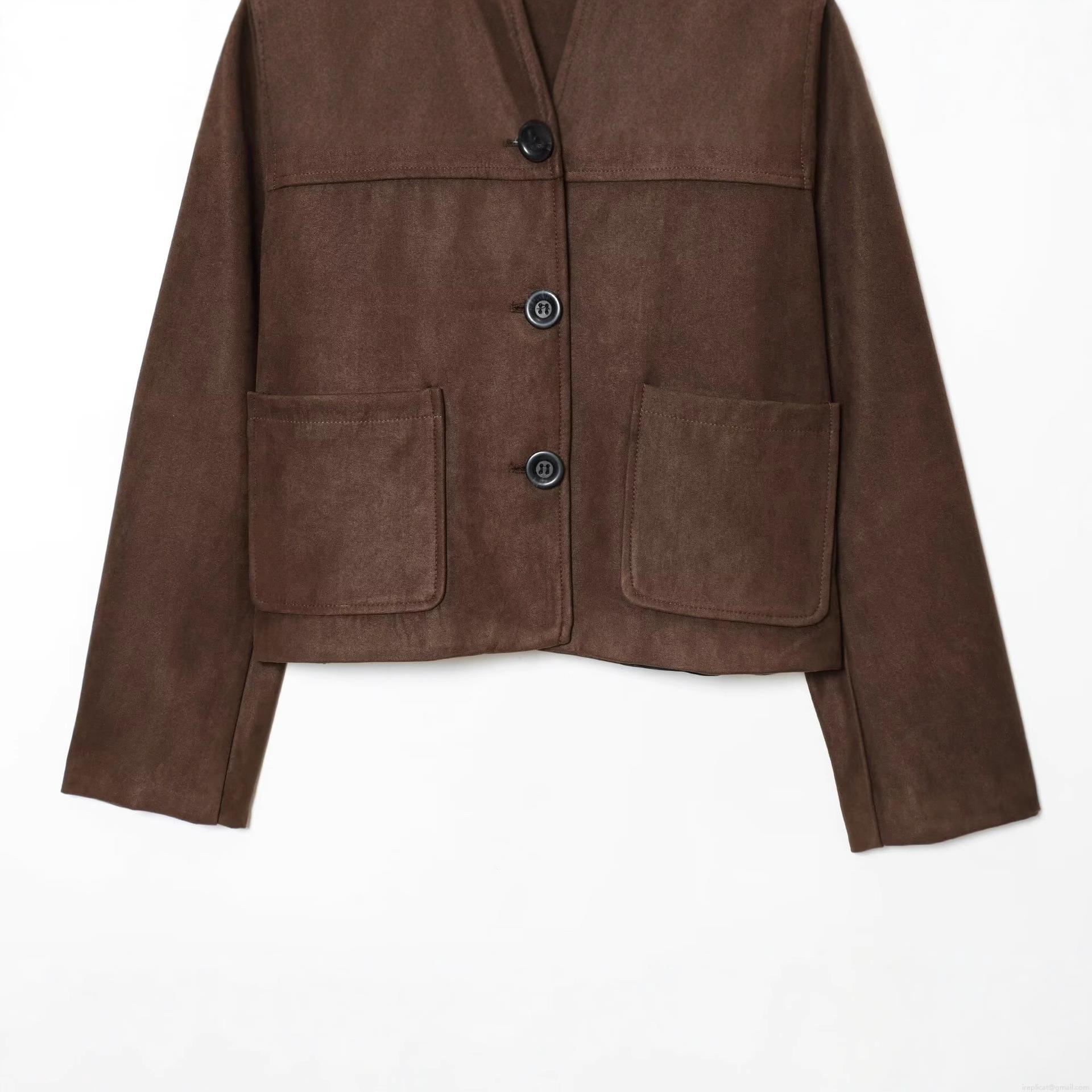 • Women's Suede Short Jacket Vintage Lapel Single Breasted Outerwear With Pockets Casual Elegant Solid Color Long Sleeve Coat For Autumn Winter