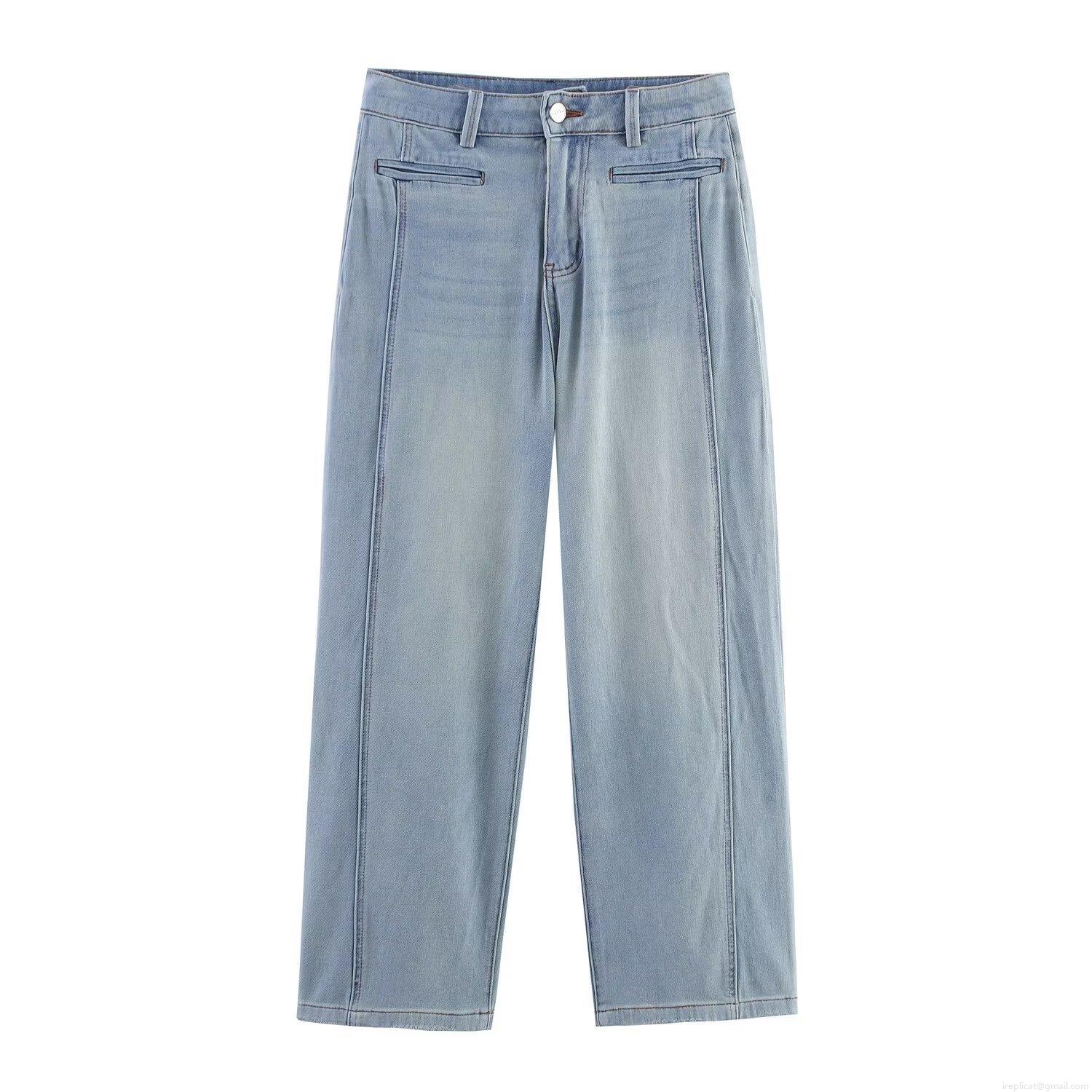 • Women's Summer Casual Low Waist Straight Leg Jeans Light Blue Loose Denim Pants With Pockets Fashion Streetwear Trousers For Women
