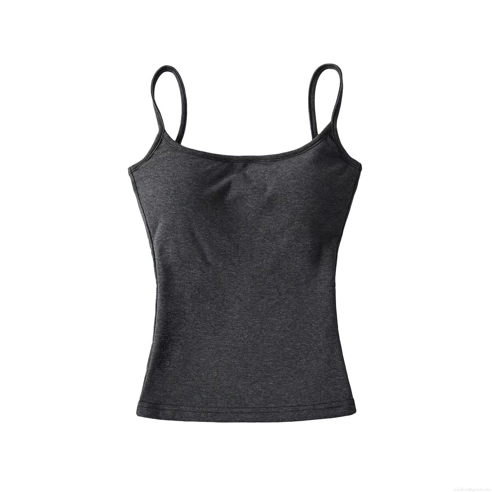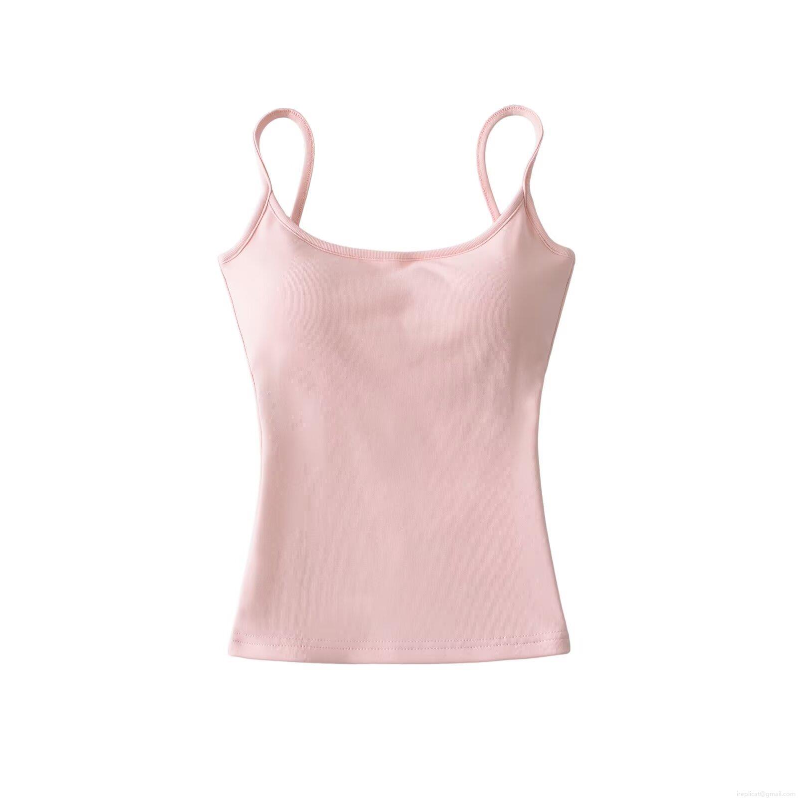 • Women's Summer Ribbed Knit Camisole Top With Built-in Chest Pad Slim Fit Sexy Sleeveless Tank Top For Daily Streetwear Polyester Solid Color Top