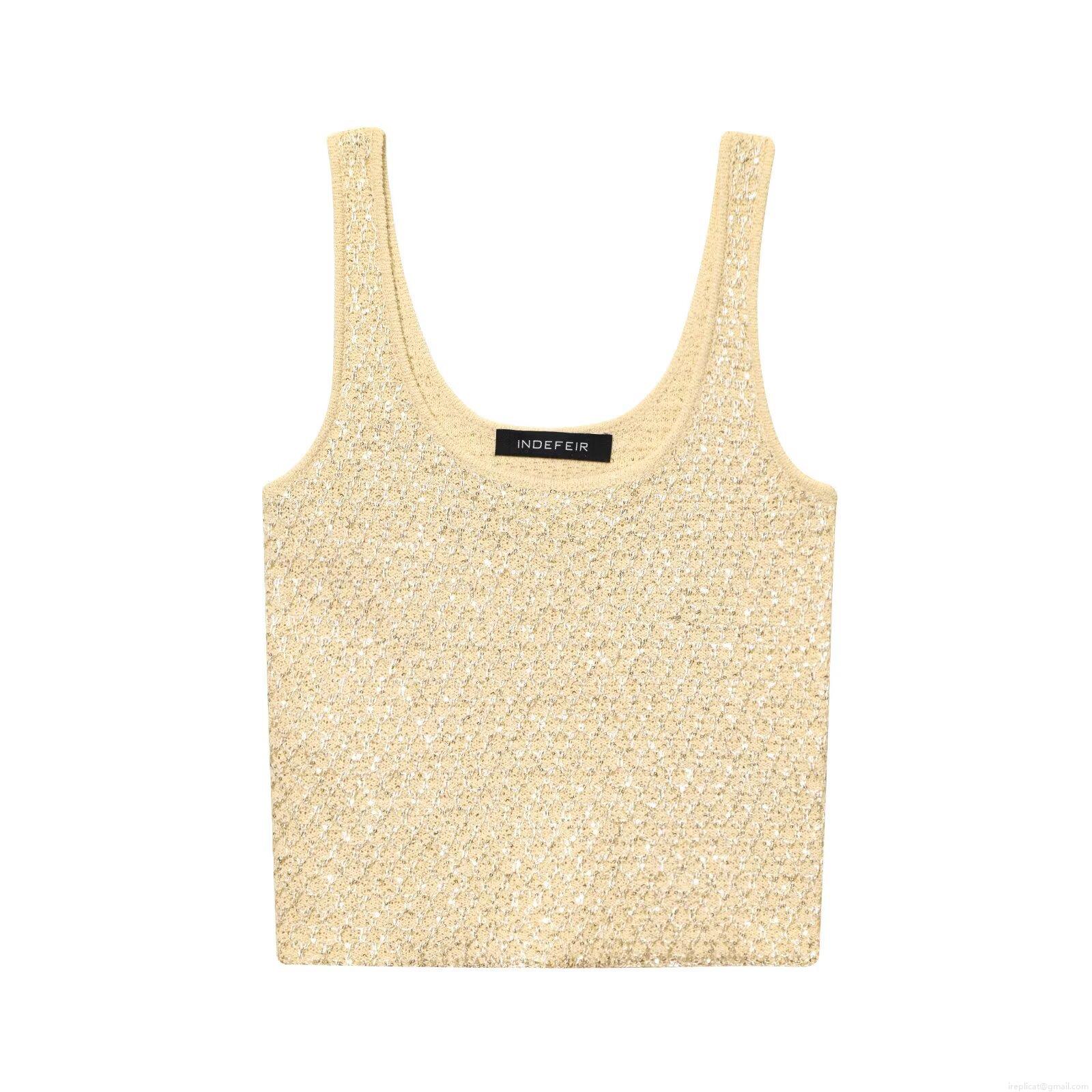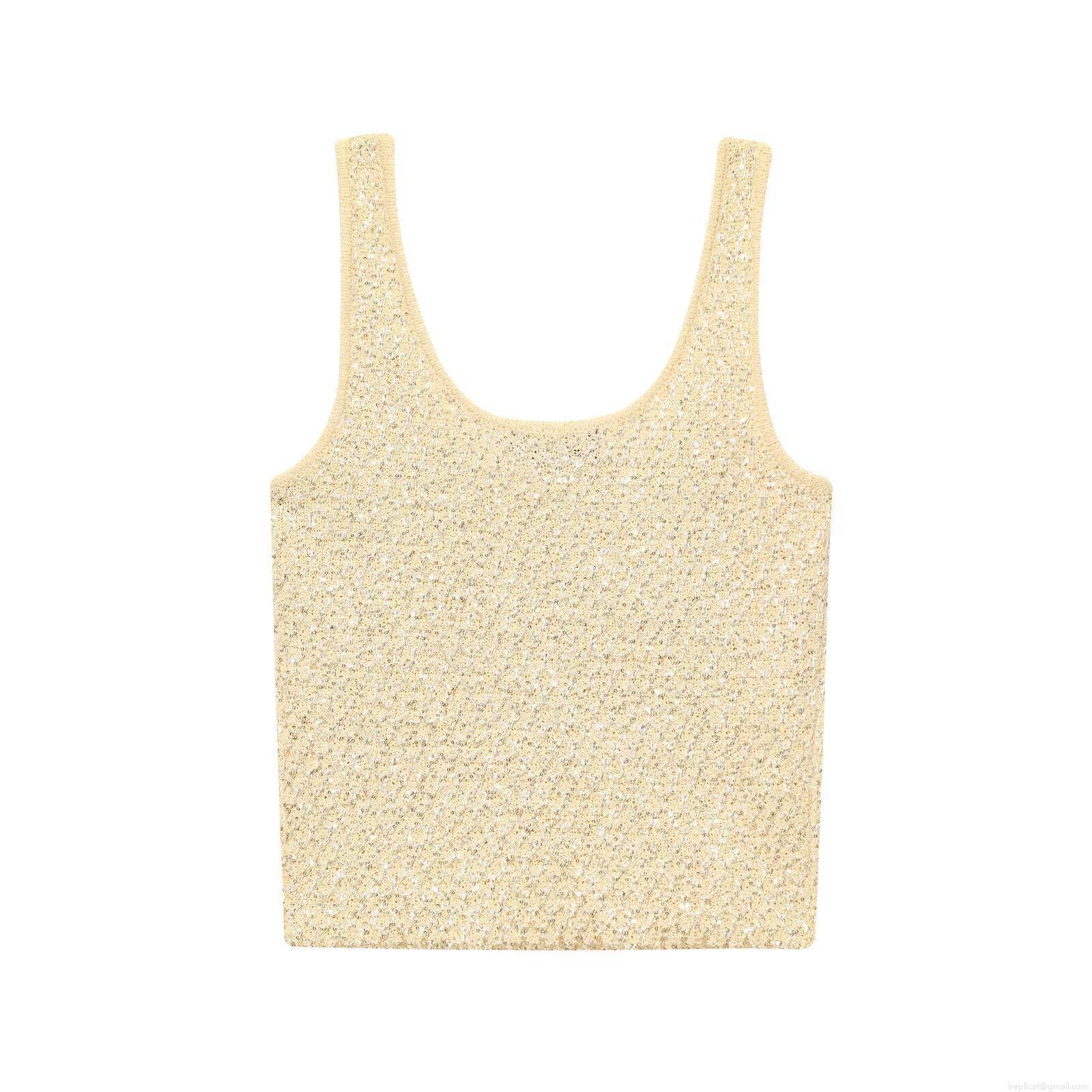 Sequin Decoration, Crew Neck Cardigan, Metallic Luster, U-neck Tank Top