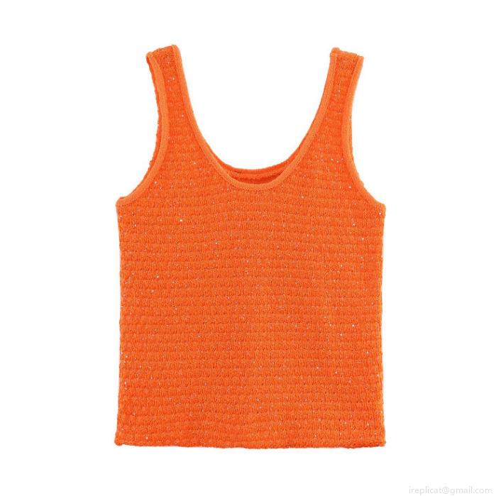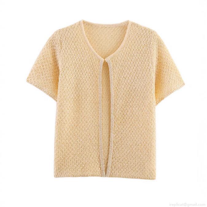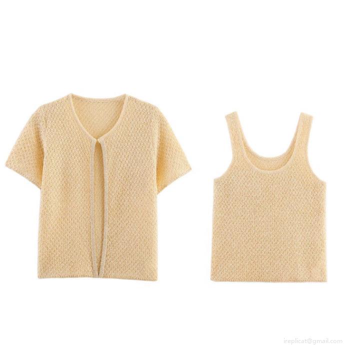 • Women's Hollow Out Sequin Knit Set Short Sleeve Cardigan And Round Neck Tank Top Two Piece Solid Color Casual Polyester Knit Sweater Set For Women