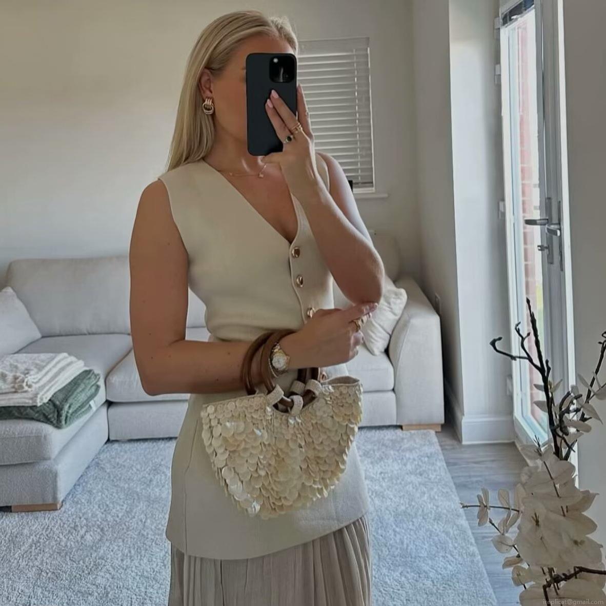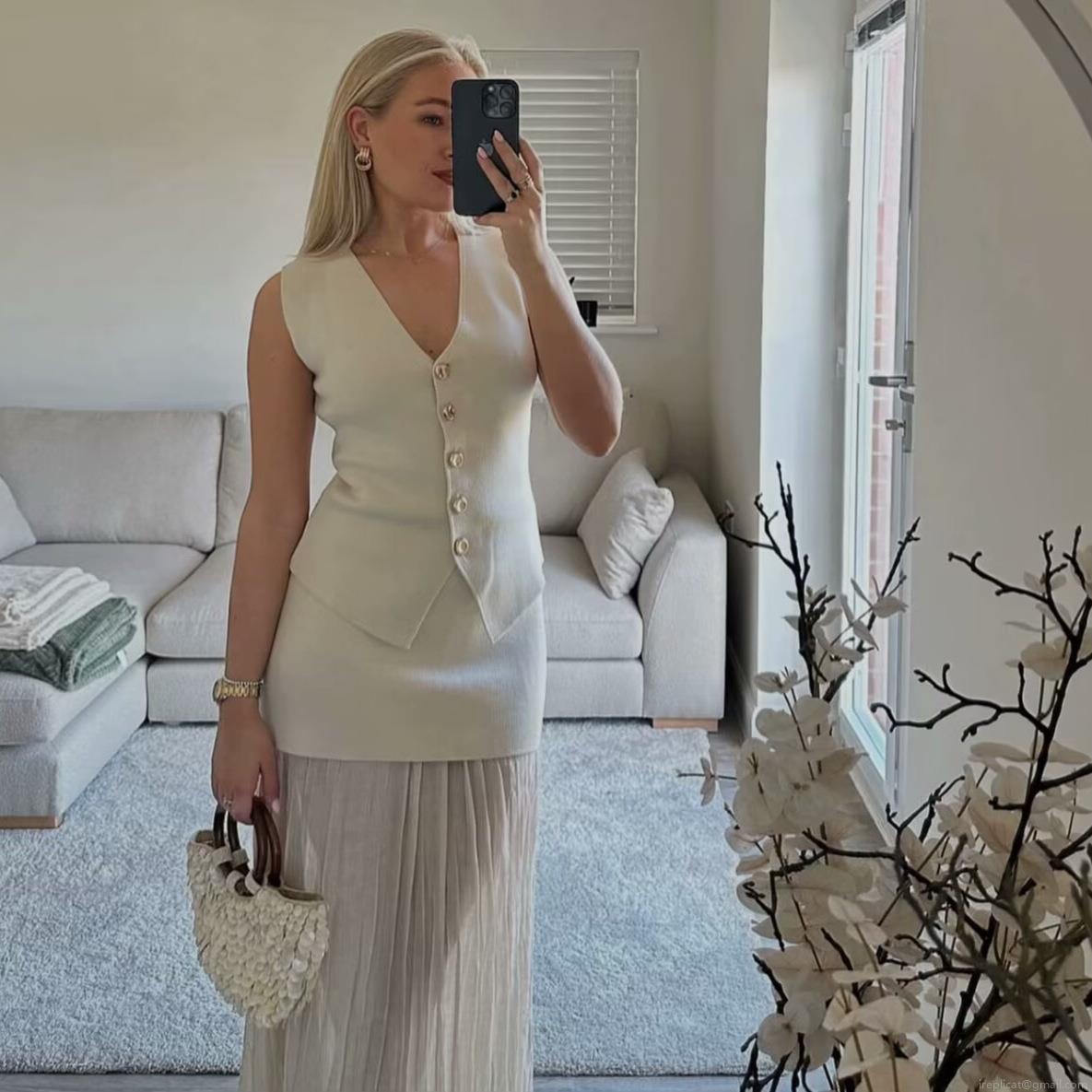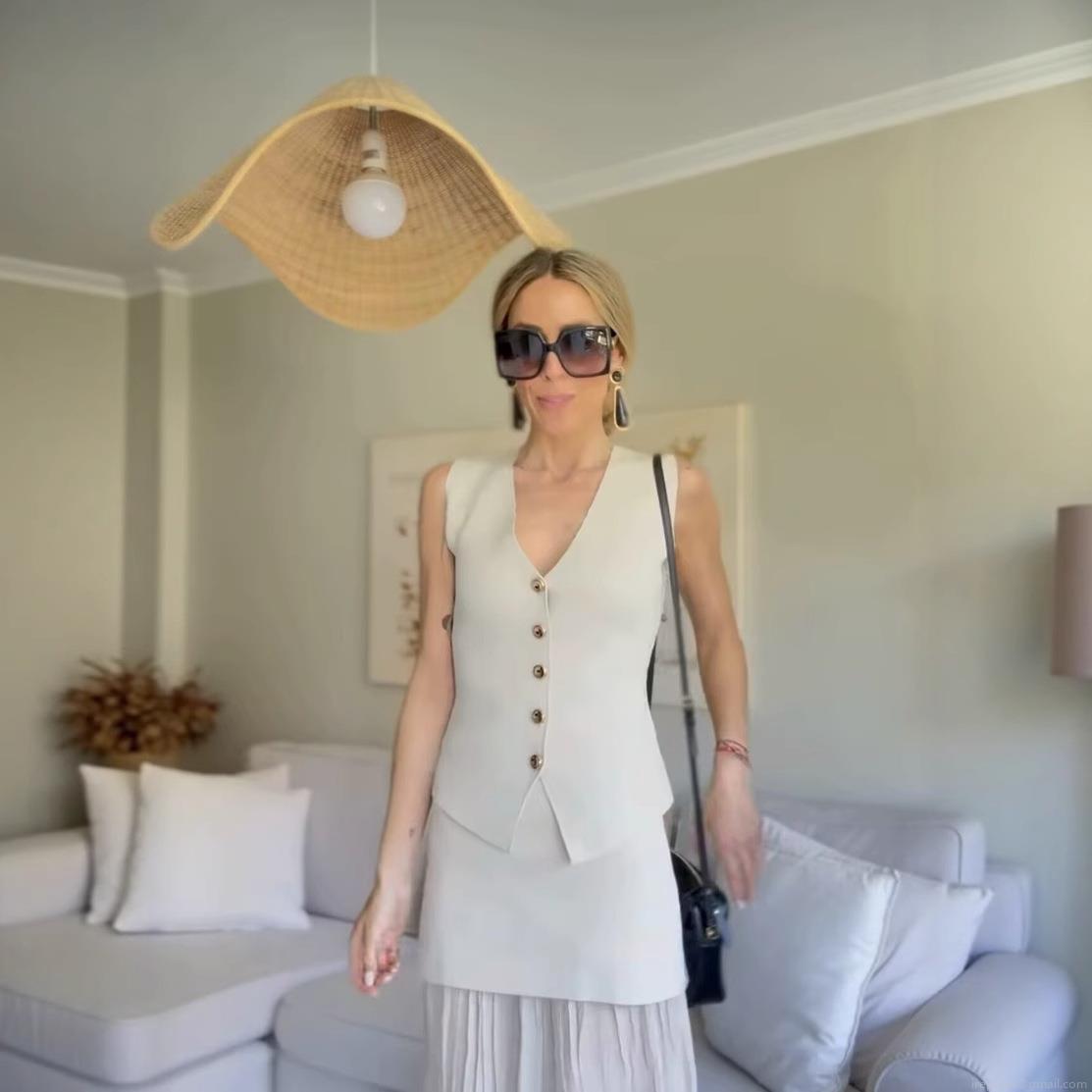 • Elegant Women's Knitted Vest V-Neck Sleeveless Button Down Tank Top Minimalist Polyester Slim Fit Sweater Vest for Office Commute Daily Wear
