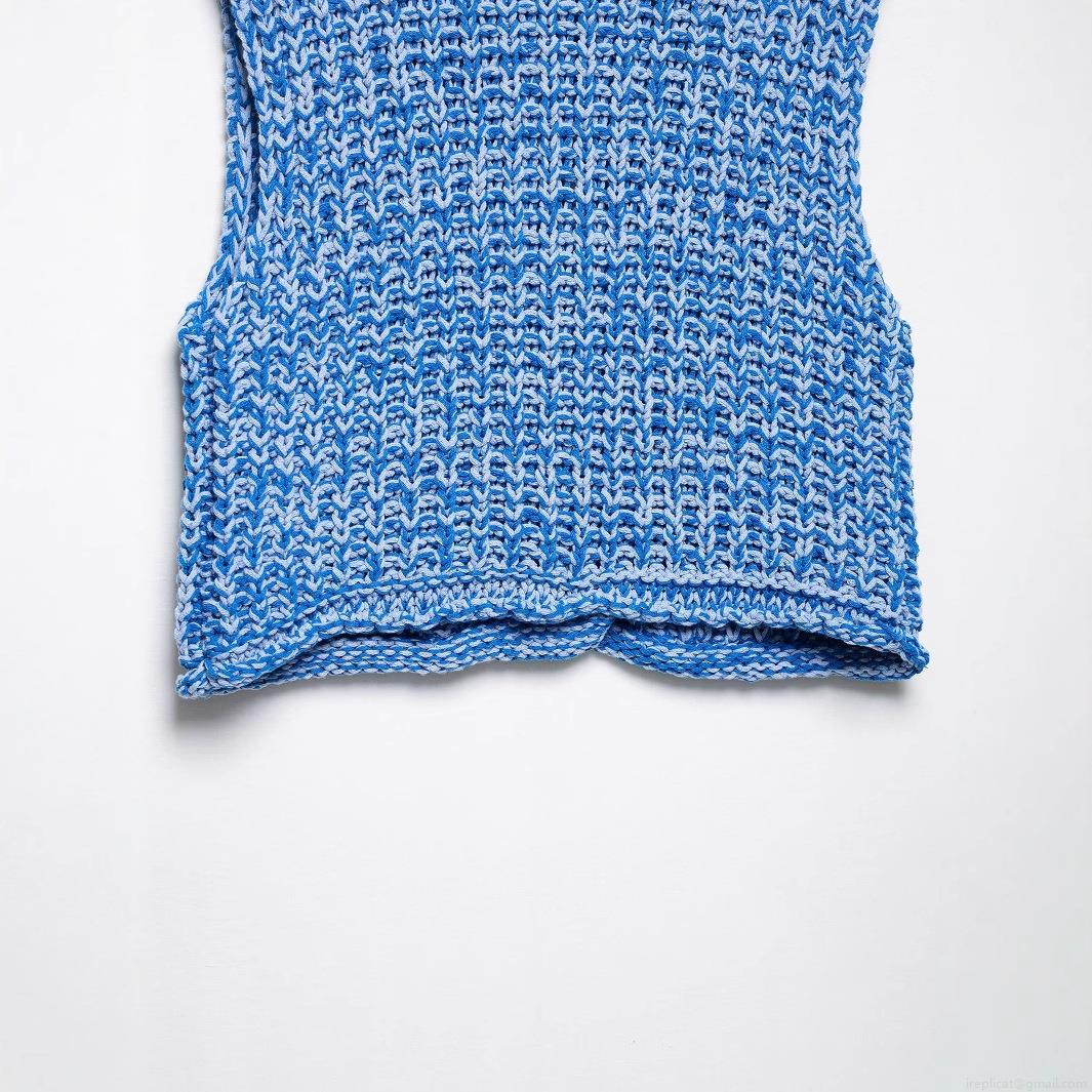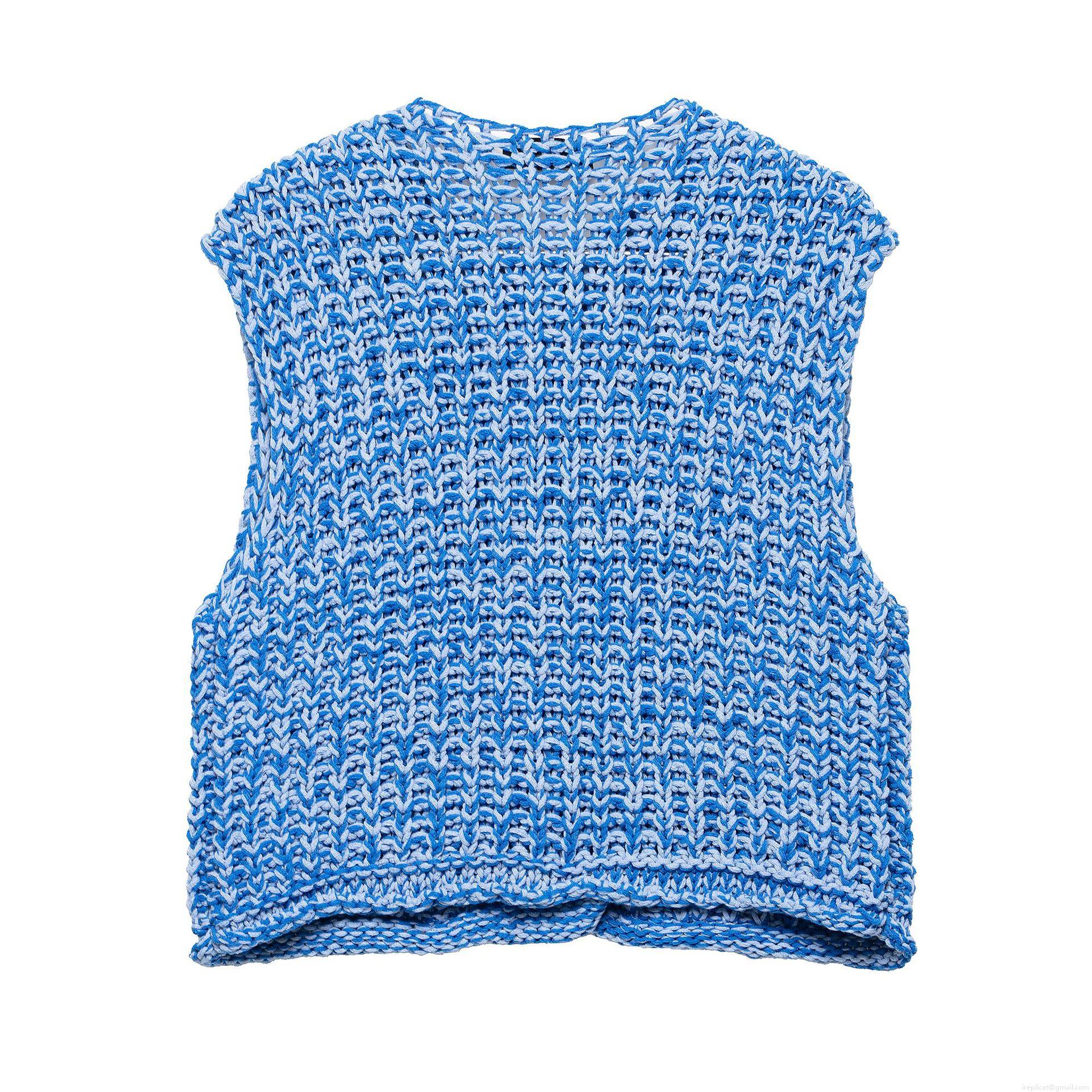 • French Style Slim Fit Chunky Knit Vest Cardigan For Women Sleeveless Button Up Mixed Blue Polyester Top With Pockets Daily Dating Chic Lady Knitwear