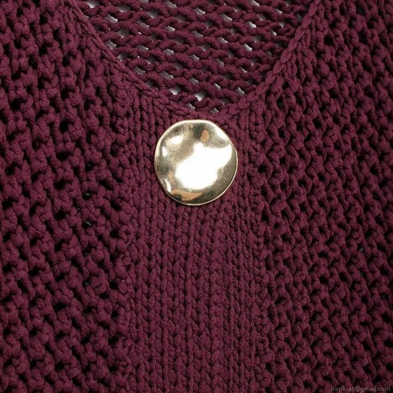 • Retro Wine Red Chunky Knit Cardigan Sweater For Women With Gold Metal Buttons V Neck Long Sleeve Short Outerwear Top With Pockets Chic Knitwear